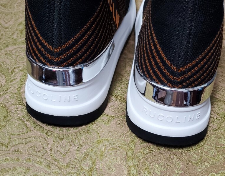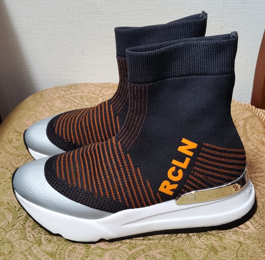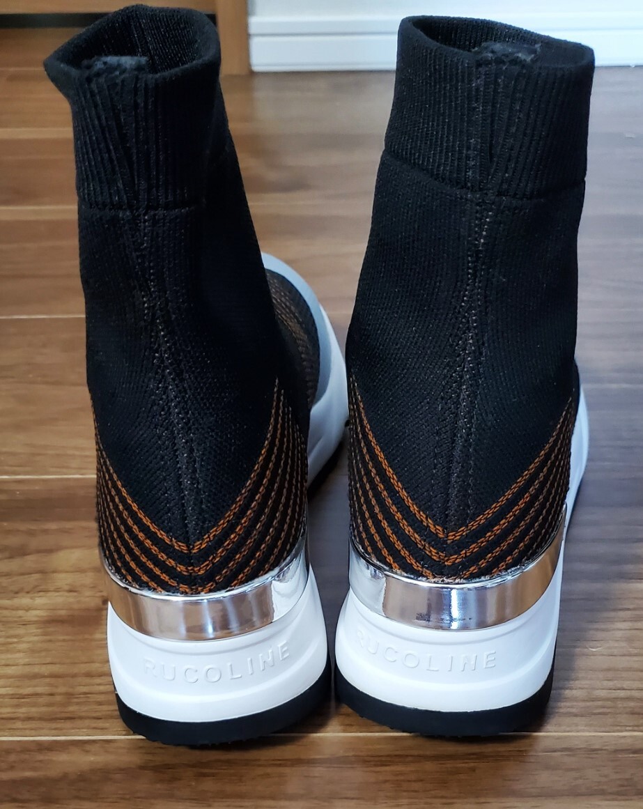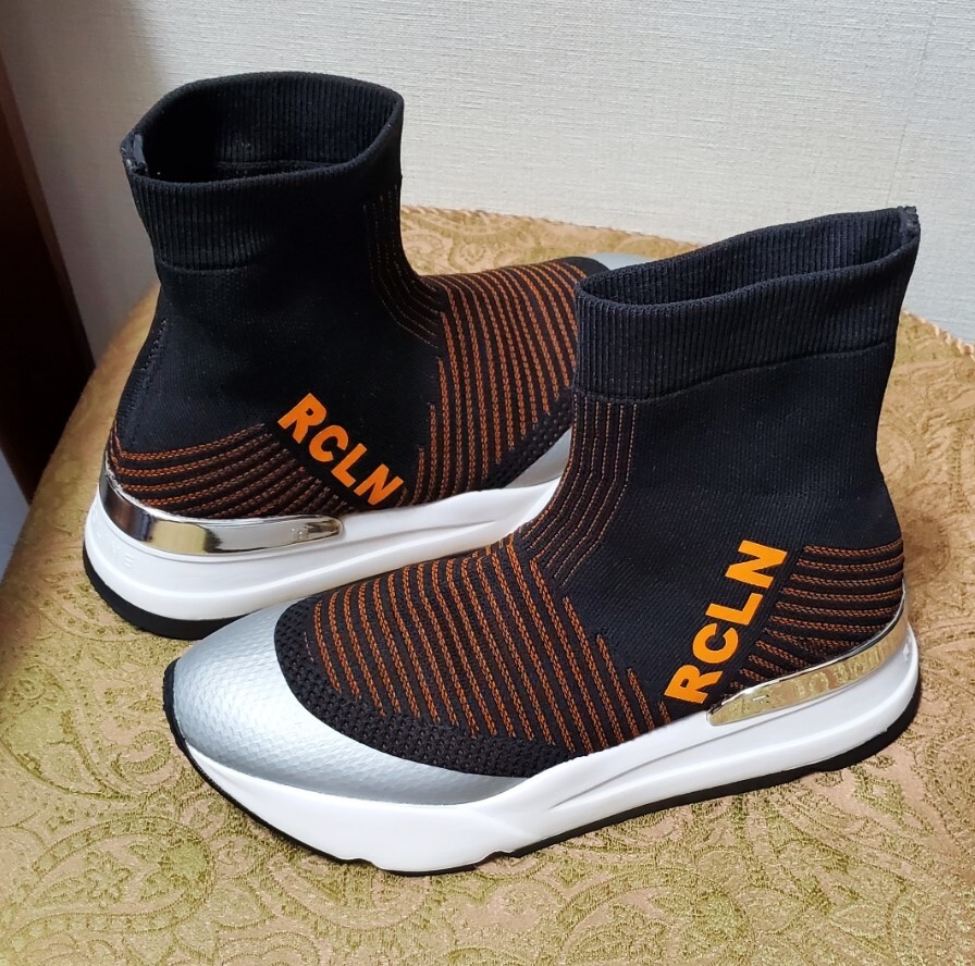 ●RUCO LINE ルコライン● ソックススニーカー ソックスブーツ レディース 38(23,5㎝-24㎝) ブラック/オレンジ色/シルバー色 美品