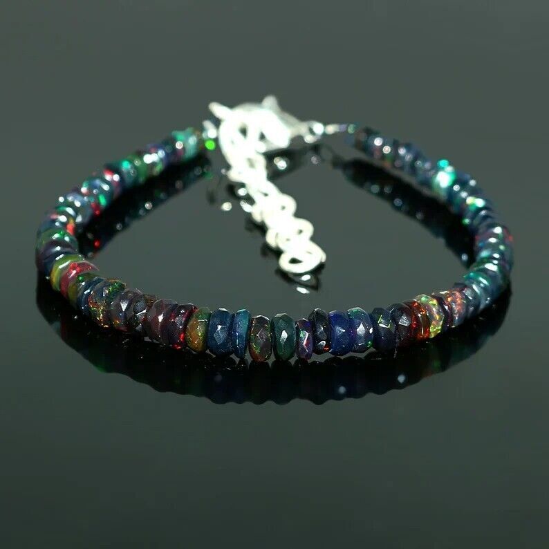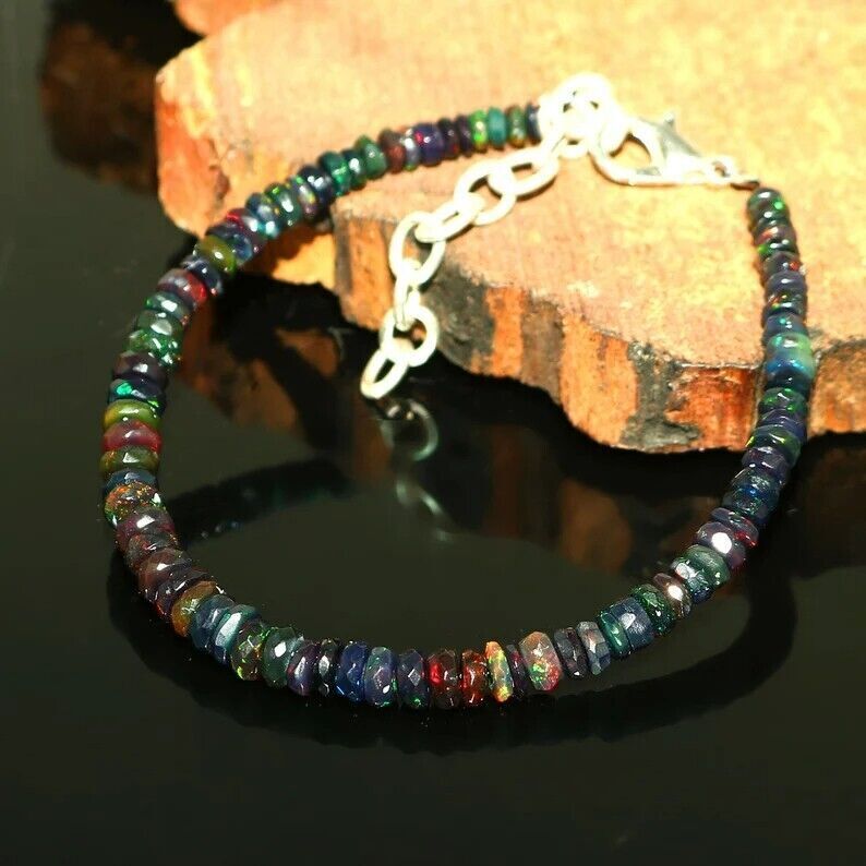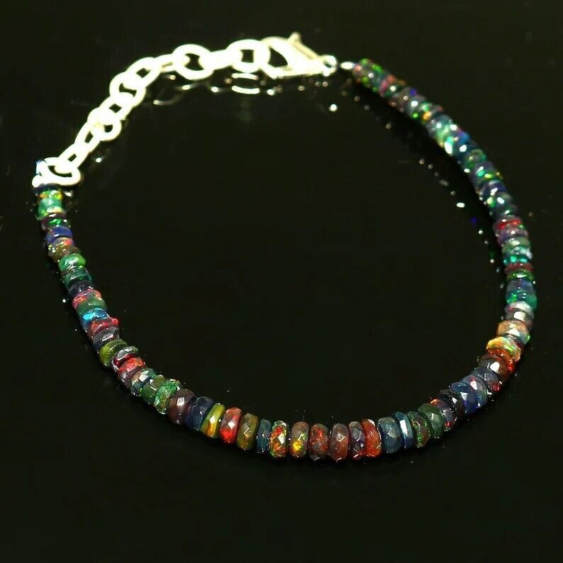 オパール ブレスレット 最高級品!見事なカットと品質★最初の画像が今回の作成の珠です。ファセット約21.5㎝★すぐにお届けできます。
