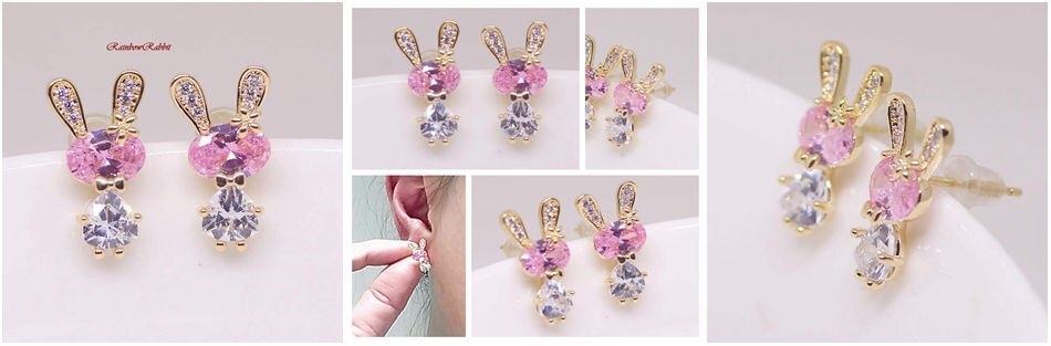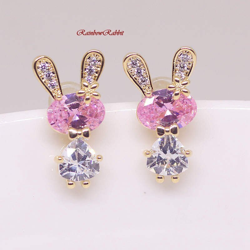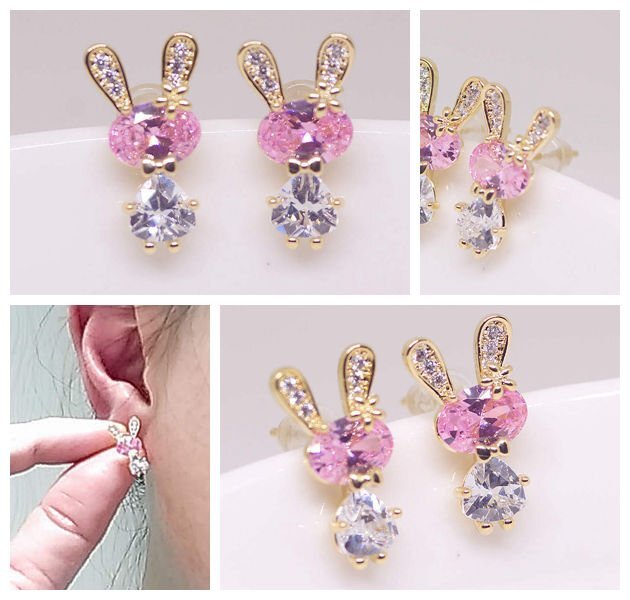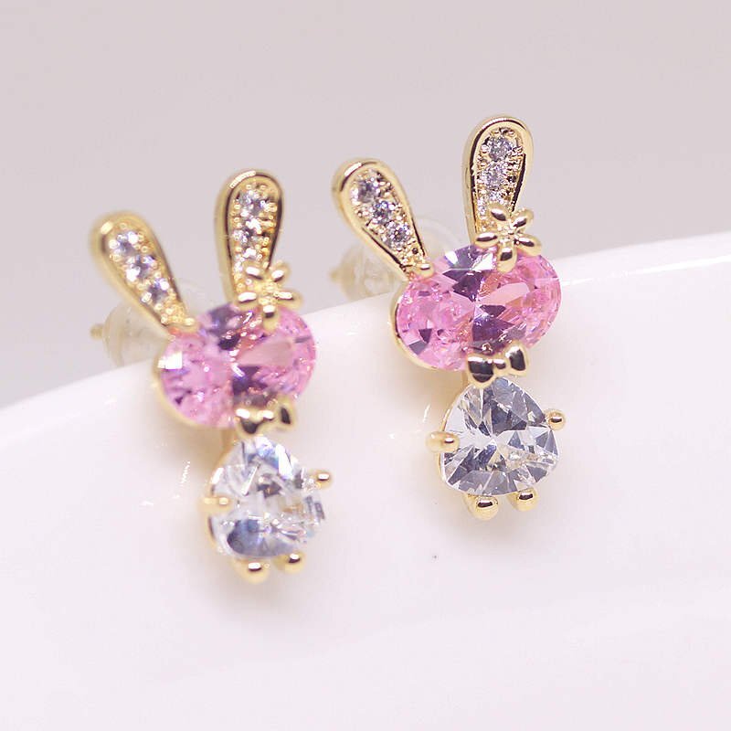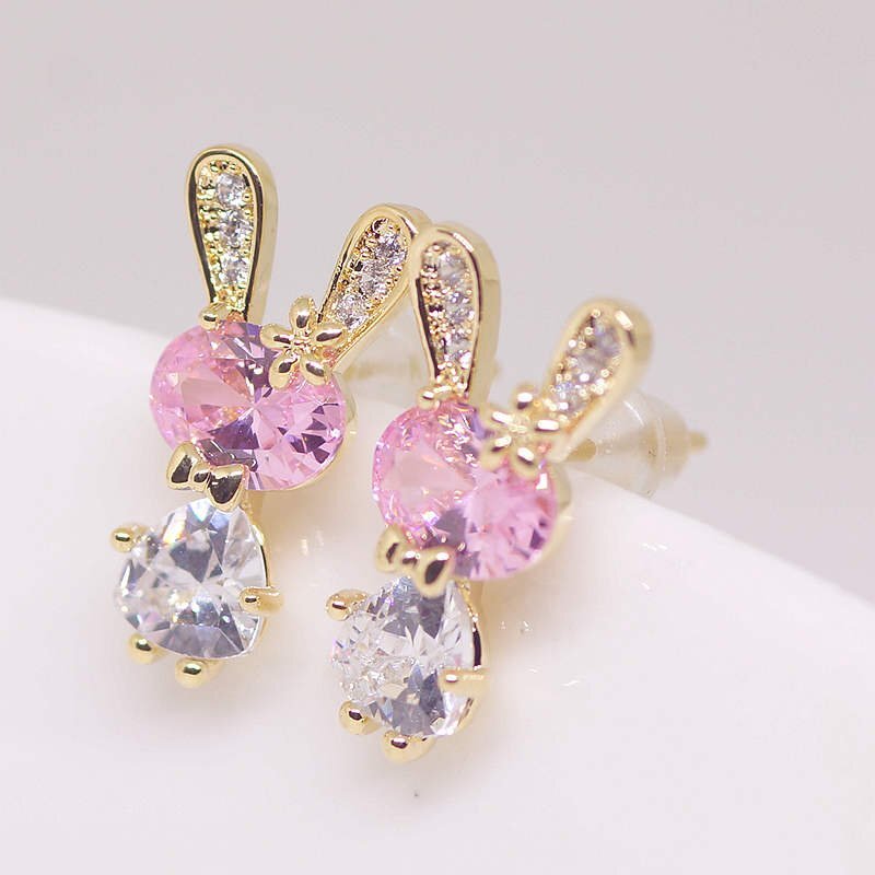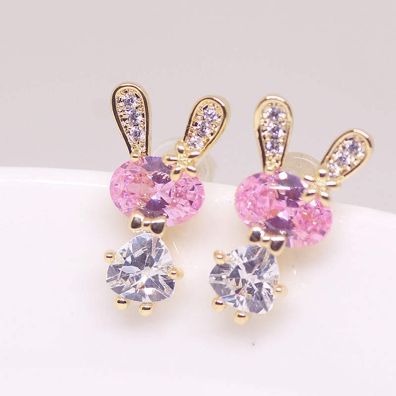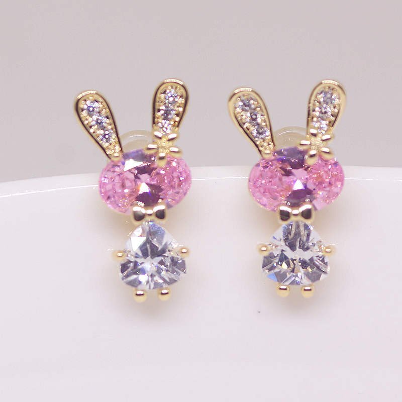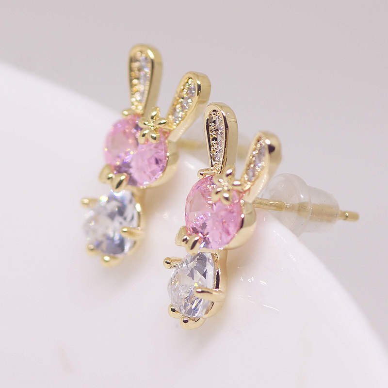 18K RGP ゴールド ダイヤ CZ ピンク ウサギ ピアス gp5302 |