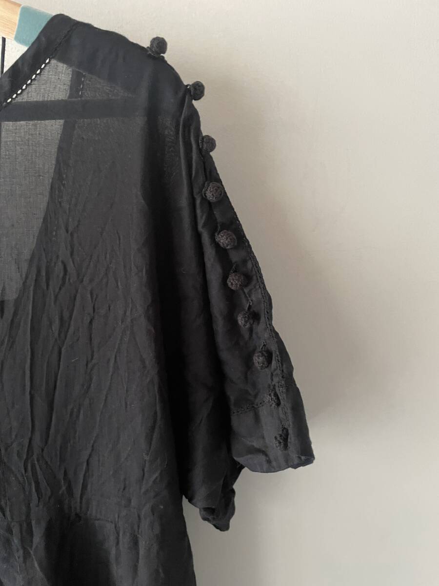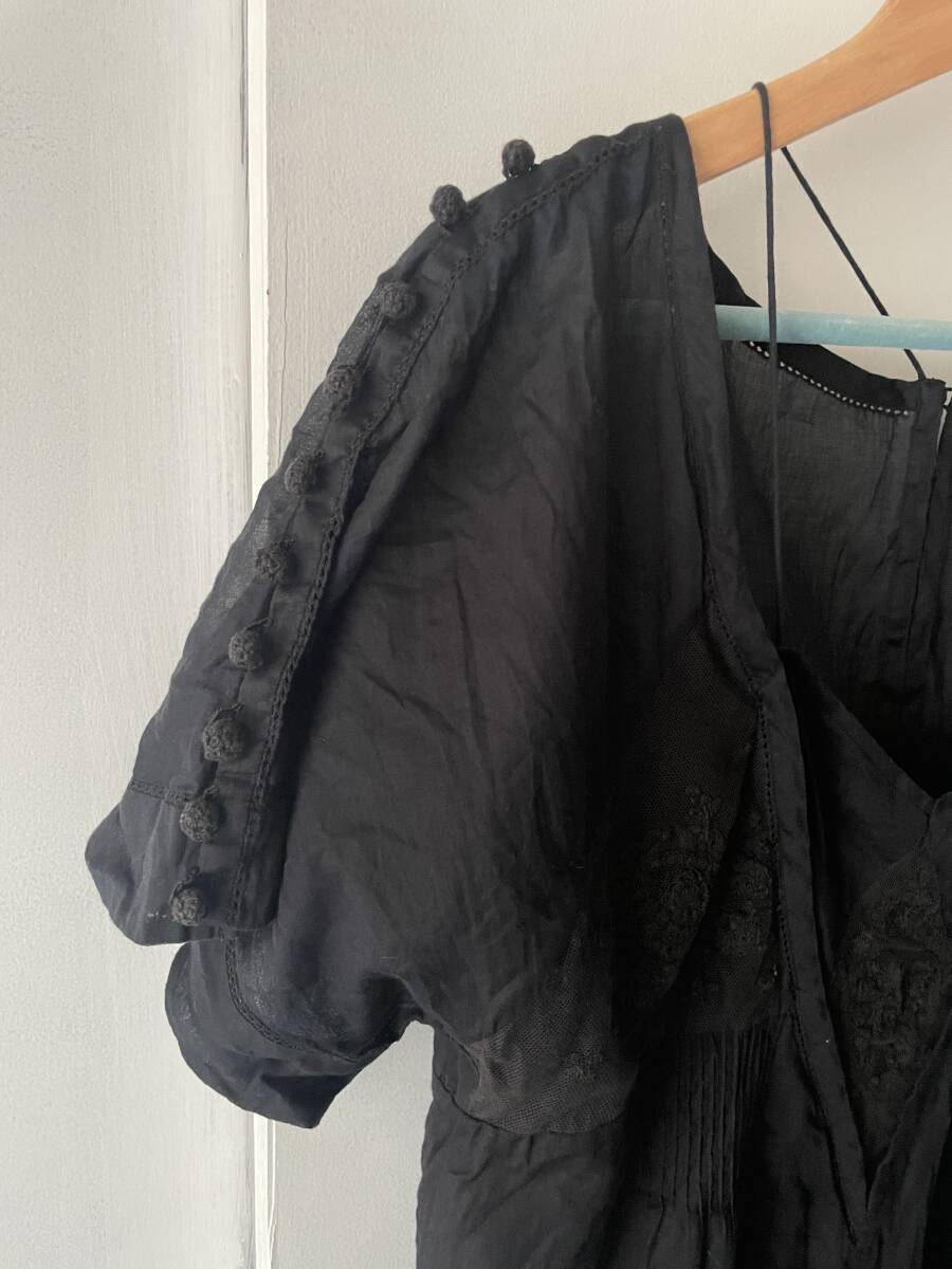 デザイン:袖口や背中に黒みボタンが付いていて、レースや刺繍使いが凝ったデザインです。
