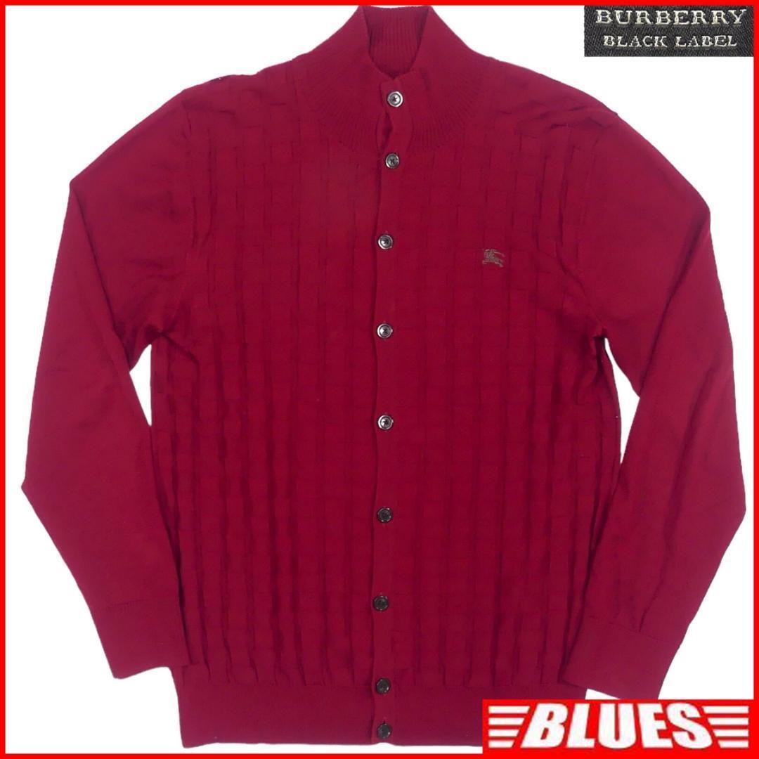 即決★BURBERRY BLACK LABEL★メンズL 廃版 ニット セーター バーバリーブラックレーベル 3 赤 チェック 三陽商会 ナイト刺繍