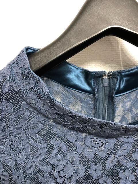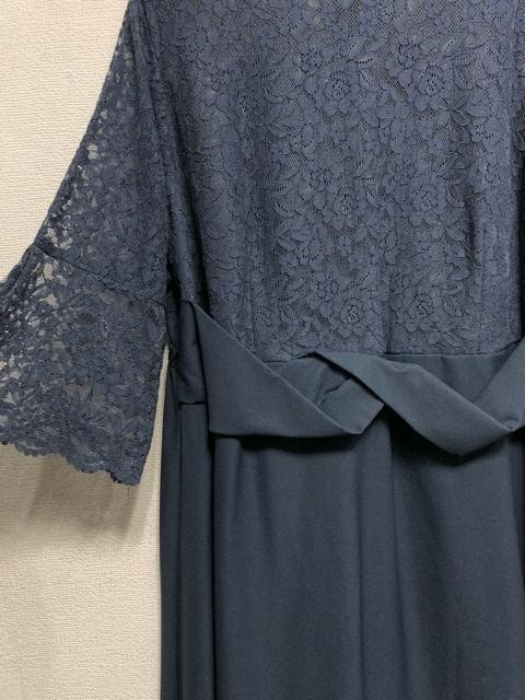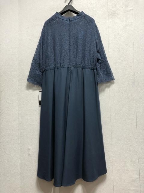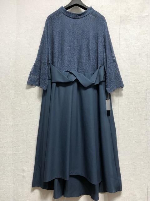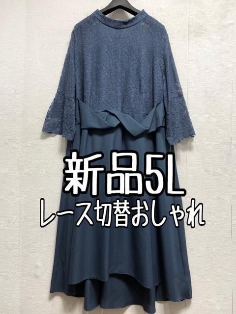 新品☆5L♪ブルー系♪ウエストデザイン&レースおしゃれワンピースドレス☆a171