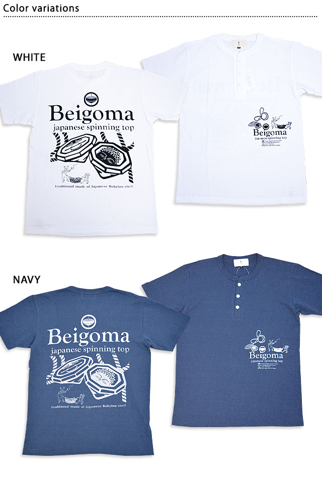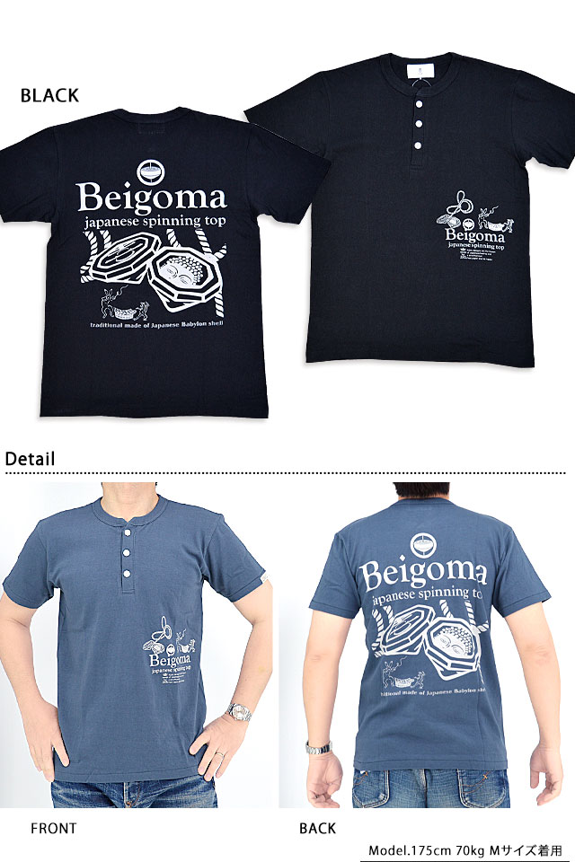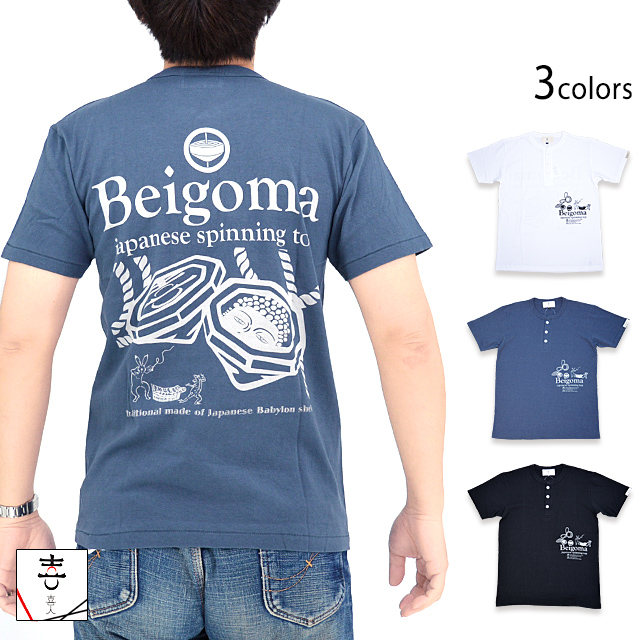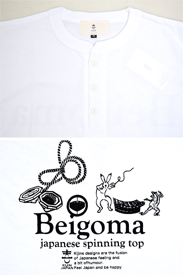 着た人、それを見た人が笑顔になれる、他にはないデザインを提供し続けている「喜人」さんから「ベーゴマヘンリー半袖Tシャツ(KJ-42008)」のご紹介です。 古くより子供たちの間で親しまれてきたベーゴマをモチーフにした半袖Tシャツです。 生地にはさらりとした空紡糸天竺の半袖Tシャツを使用。 | ||||||||||||||||||||