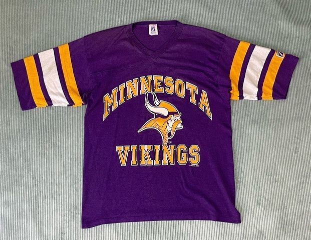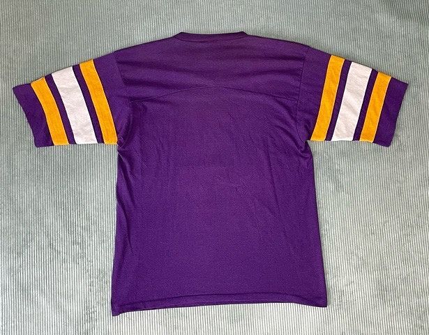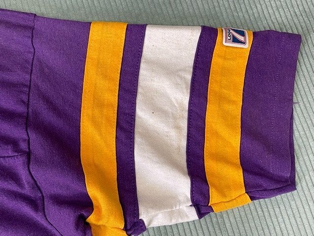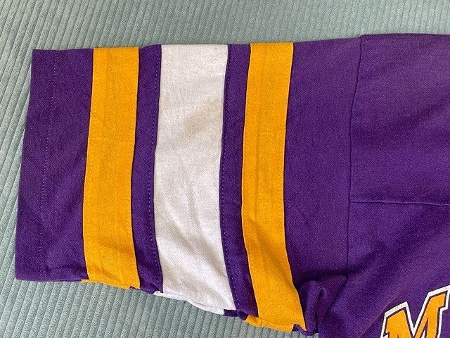 | 説明 | 80-90's LOGO7のフットボールTシャツ。 NFL ミネソタ・バイキングス パープルボディにラバープリント、袖ラインは縫い付け。 大き目のボックスシルエット。 アメリカ製 |