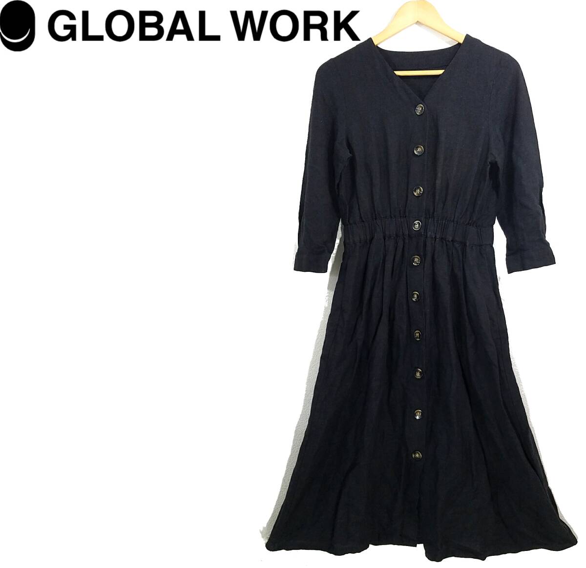 ★★★★即決価格でご落札は送料無料★★★★ GLOBAL WORK フレンチリネン 七分袖ワンピース M グローバルワーク FRENCH LINEN ノーカラー 黒 (株)アダストリア レディース 春夏秋 ブラック 送料600円~ | ||||||||||||||||||||||||||||||||||||||||||||||||||||||||||||