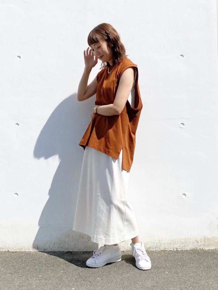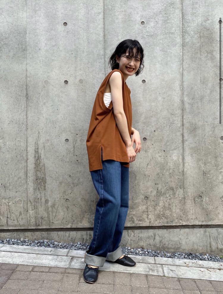 アームホールのゆとりでレイヤードが楽しめる。おしゃれな抜け感がポイント。