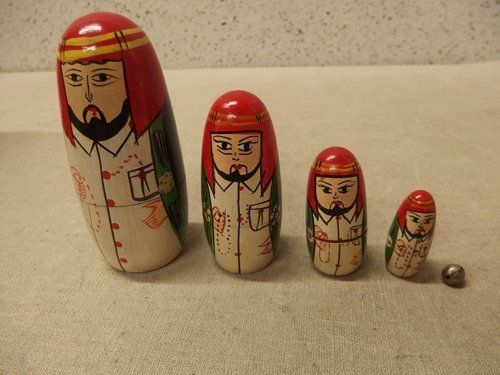 ☆★☆---☆★☆---☆★☆---☆★☆---☆★☆---☆★☆---☆★☆---☆★☆---☆★☆---☆★☆ドバイ 民族衣装 マトリョーシカ 4ピースドバイ 民族衣装 マトリョーシカ 4ピースになります。*サイズ:高さ5.2~14.5cm程度*ヒビ割れ、汚れ、キズ、変色があります。*しまりが悪いものもあります。詳細は画像をご確認ください。以上のような状態ですが、よろしければどうぞ♪(^^)☆★☆---☆★☆---☆★☆---☆★☆---☆★☆---☆★☆---☆★☆---☆★☆---☆★☆---☆★☆