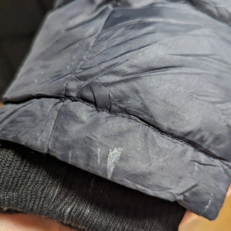 目立った傷汚れはありませんが、フード部分が紛失しているのか、チャック部分がむき出しになっております。
