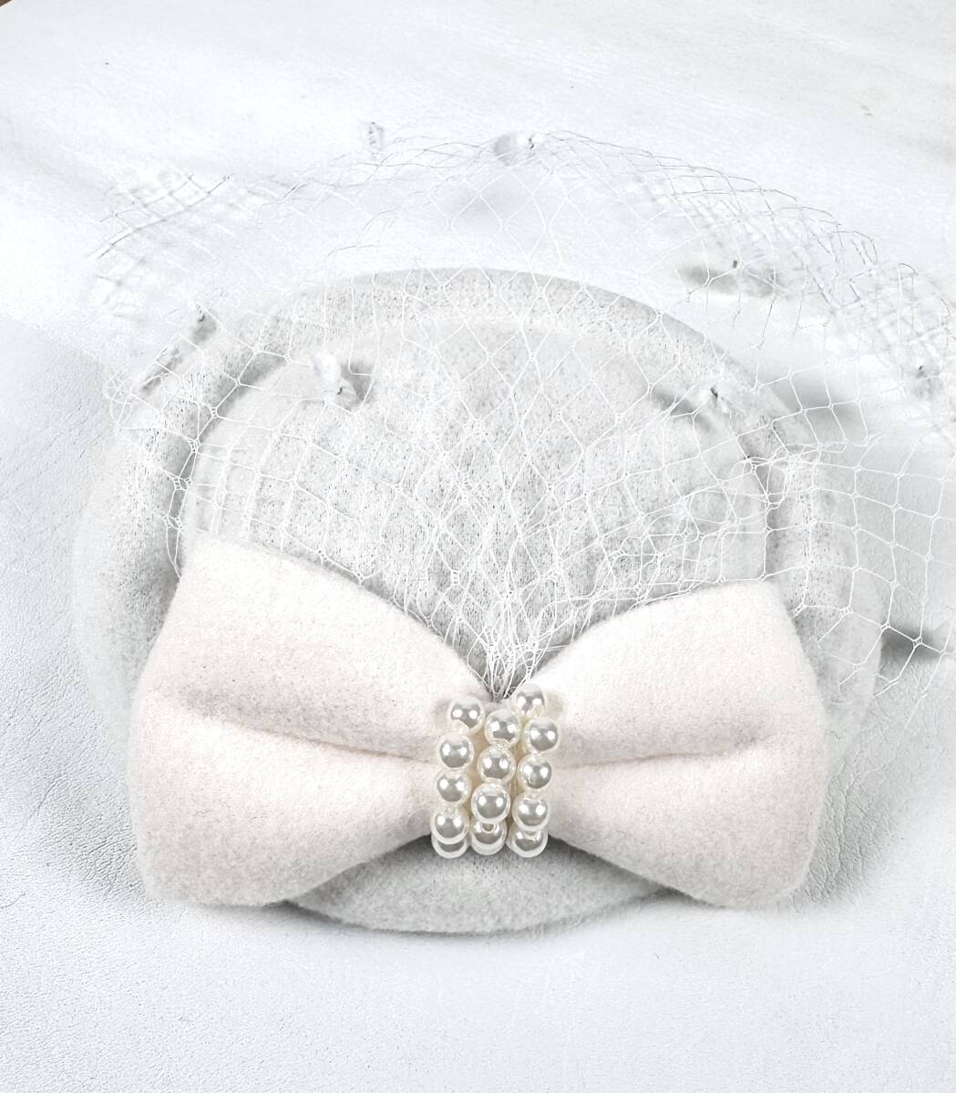 新品・未使用★カクテルハット トーク帽 リボン パール ベール付き 白 ホワイト 帽子 コスプレ パーティー ヘアアクセサリー フォーマル