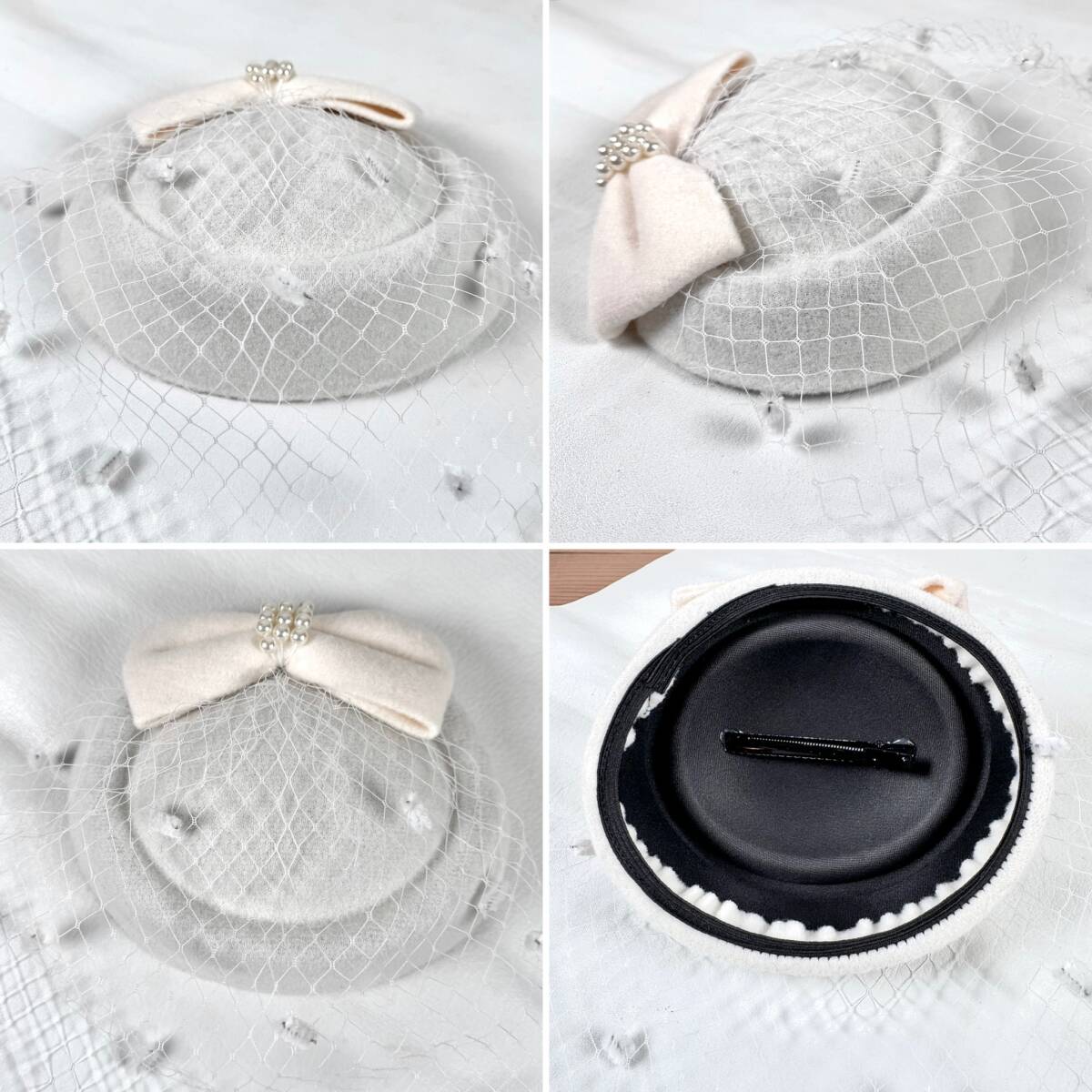 上品さと高級感を兼ね備えたフエルト素材でしっかりとした仕上がり★内側のヘアクリップを髪にはさむタイプで簡単に着用いただけます♪