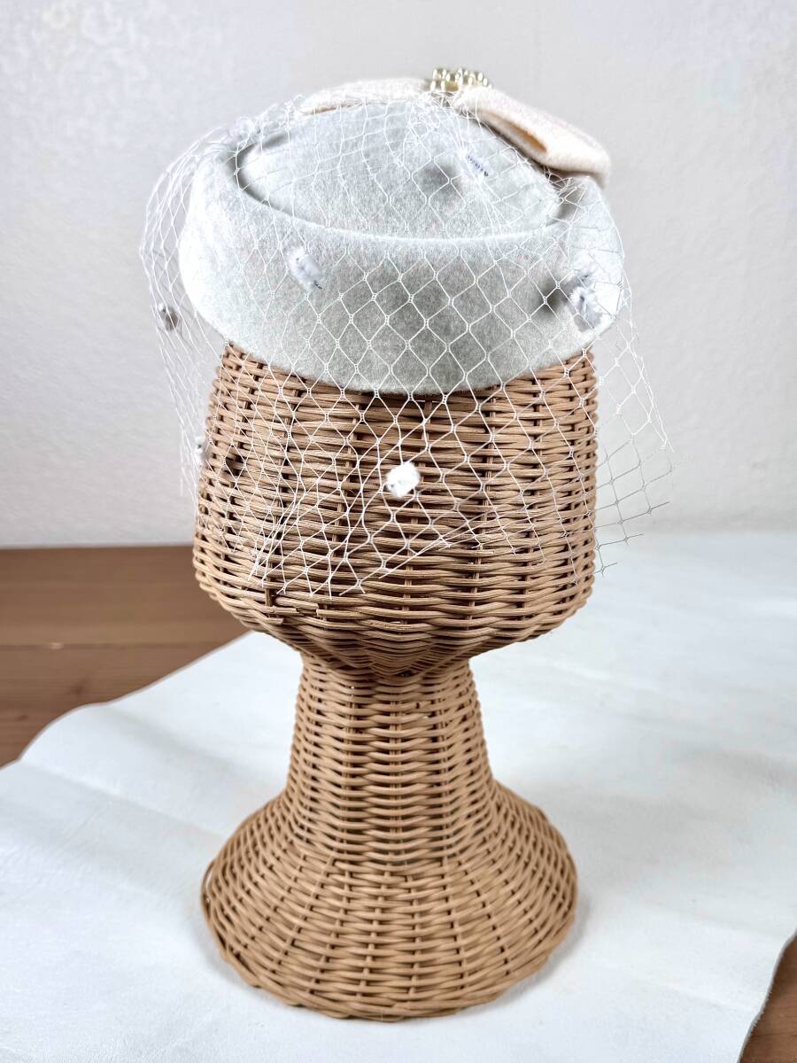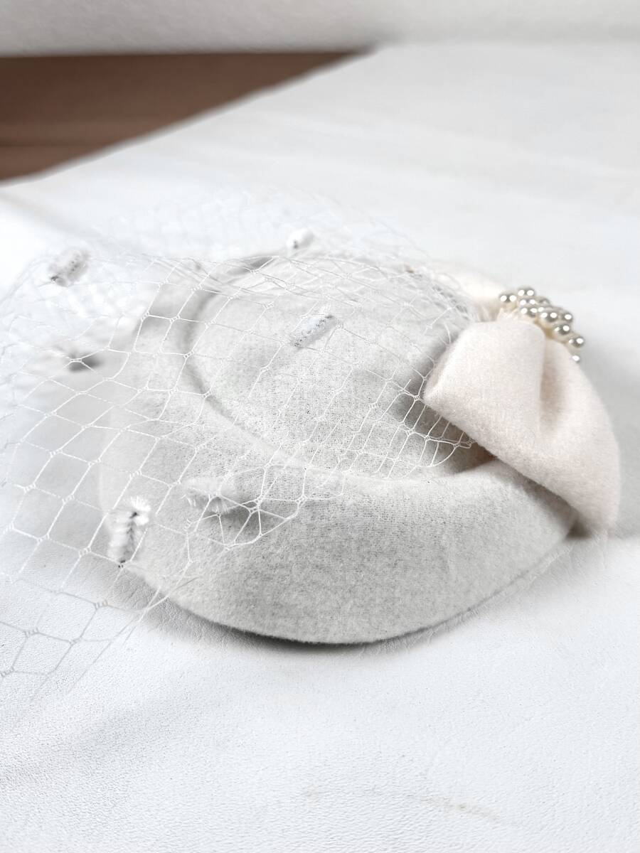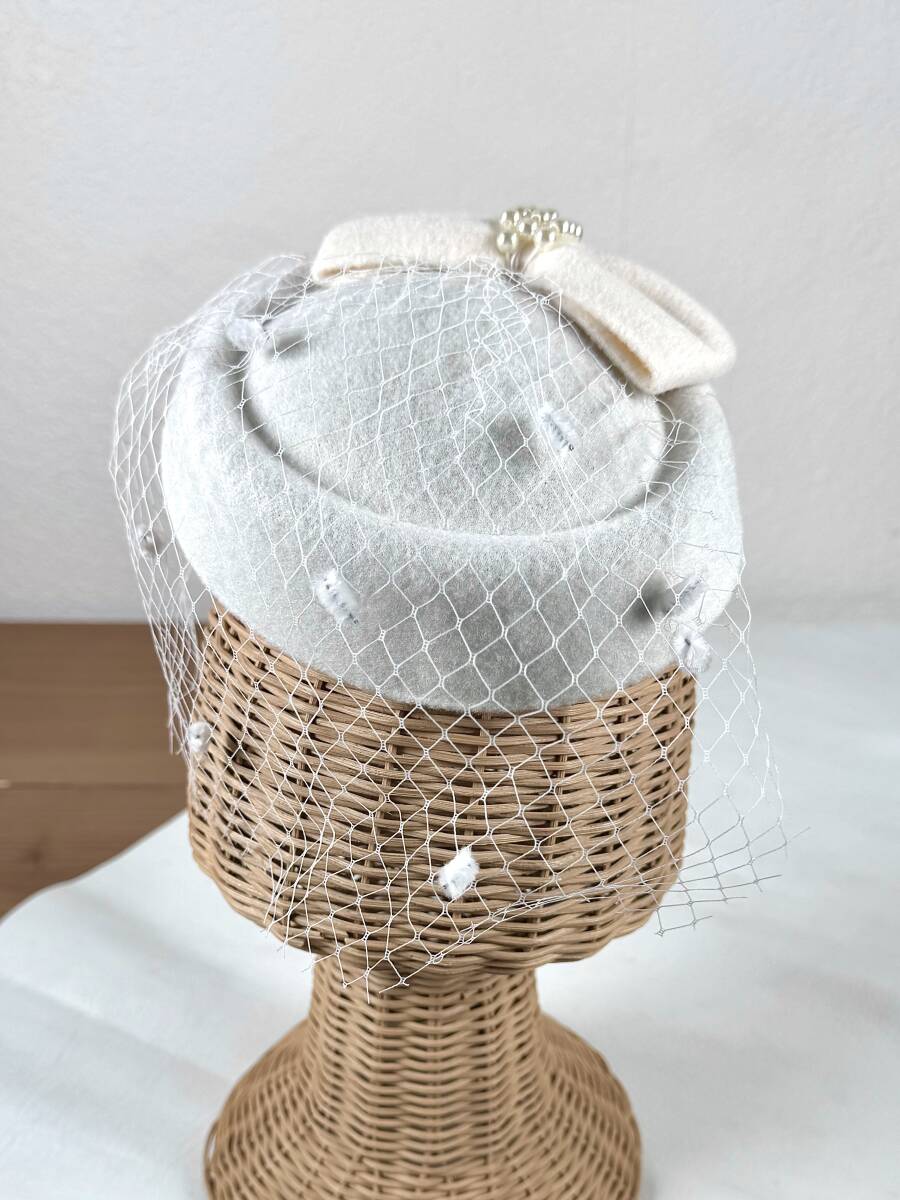 モールドットがアクセントになった白地のベールがクラシカルな印象を放つトーク帽です★