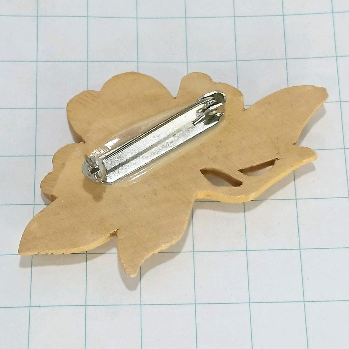 送料無料)ビンテージ☆木彫り 椿モチーフ☆アンティーク ブローチ A24675