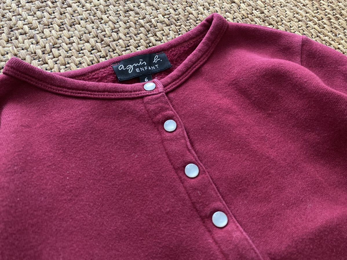 フランス製 agns b ENFANT キッズ カーディガンプレッション SIZE 6 ワイン