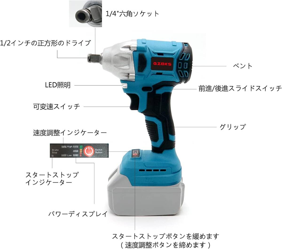 電動ドライバー 1/2 レンチ、1/4 インパクトレンチ インパクトドライバー400Nm マキタ 互換 18V BL1830 BL1840 BL1850B BL1860B BL1890B