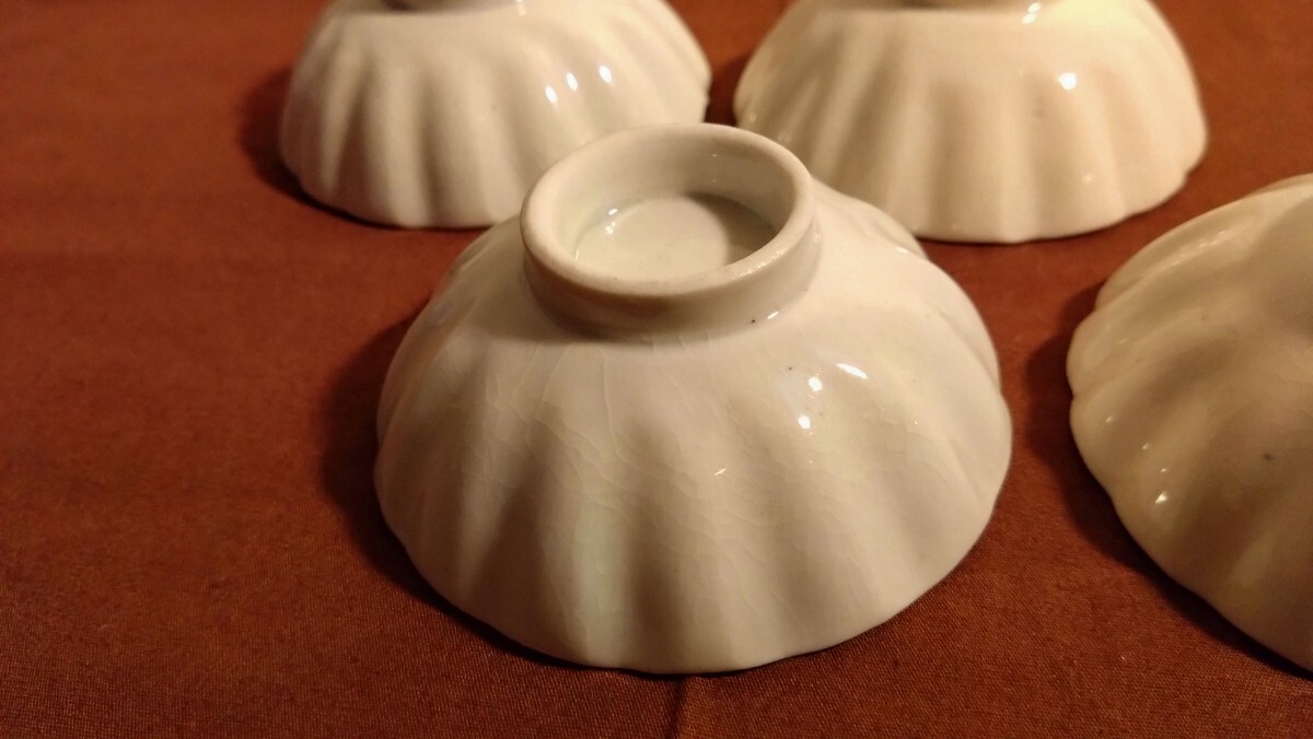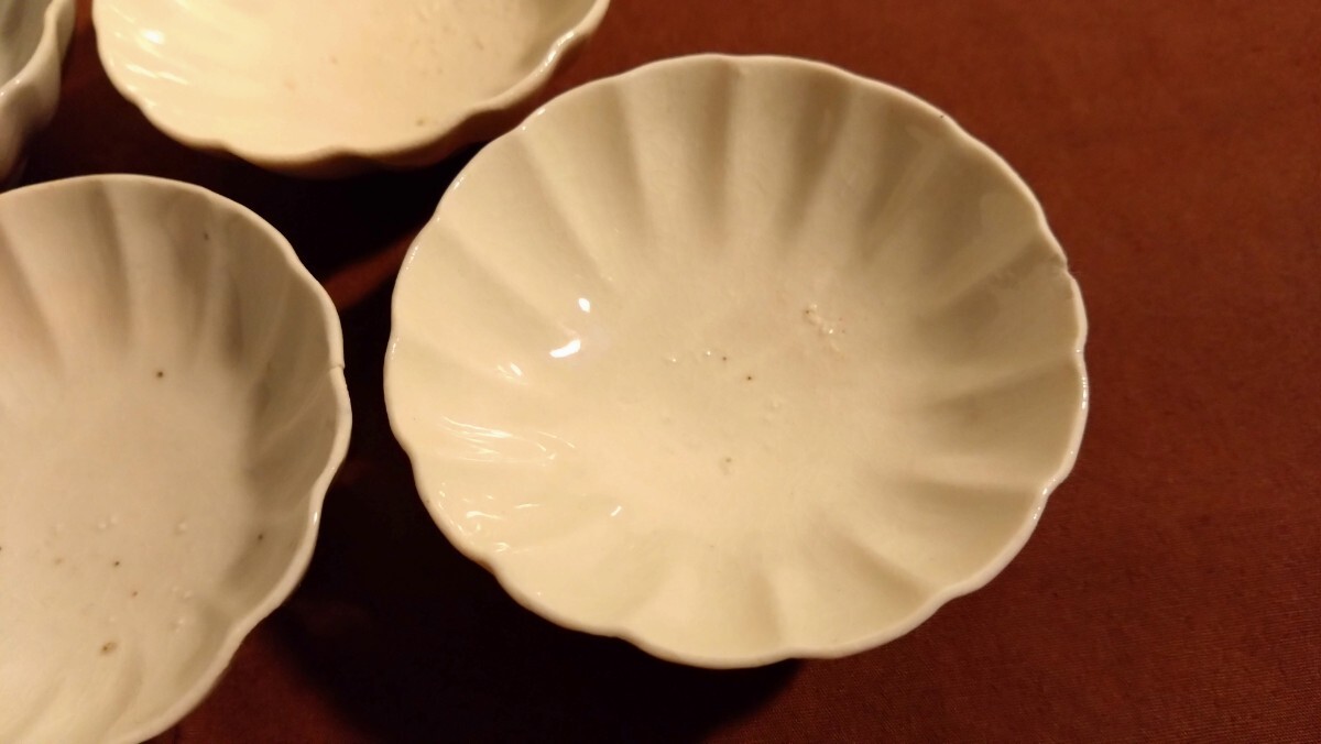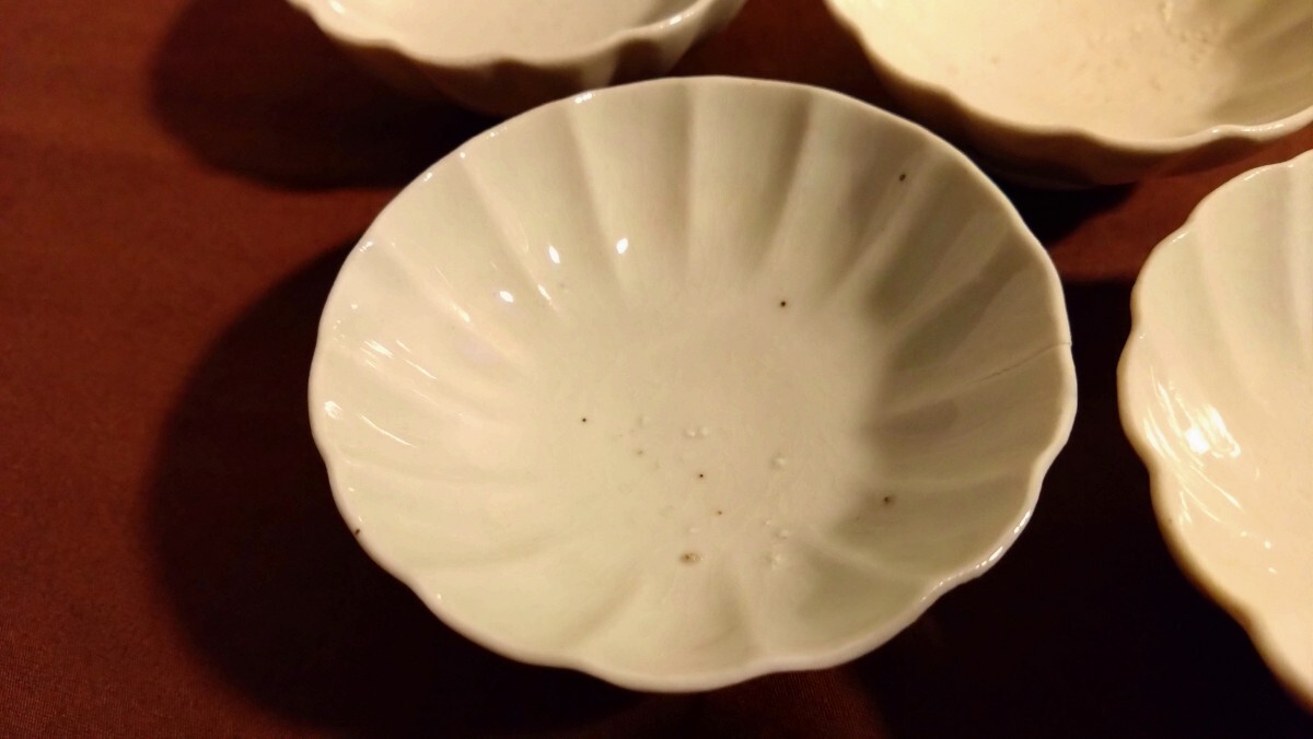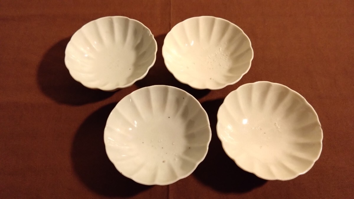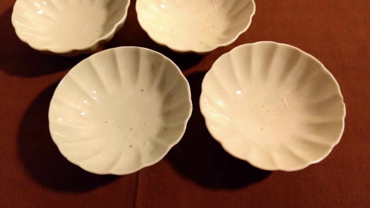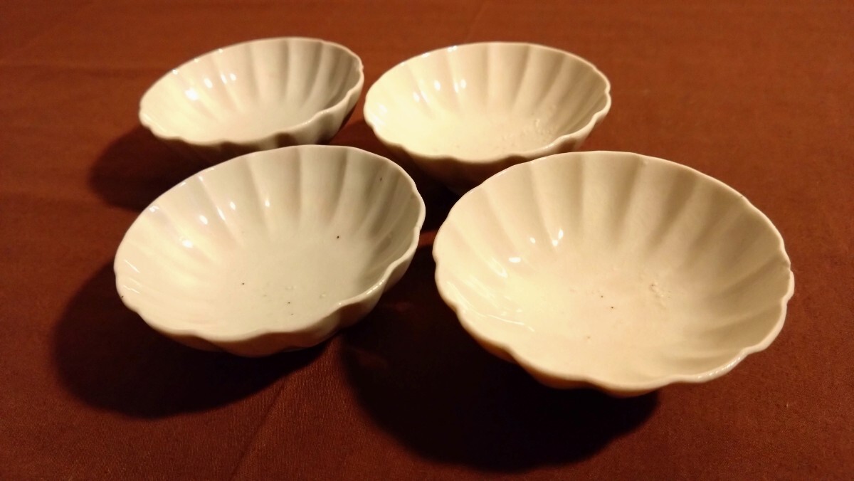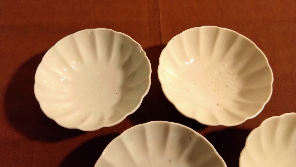 李朝 古伊万里 伊万里 白磁 輪華皿 向付 薄手生地 蔵出し 4客になります。大変古いものですので写真をご確認の上是非ご活用ください。