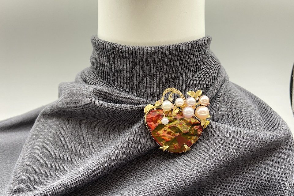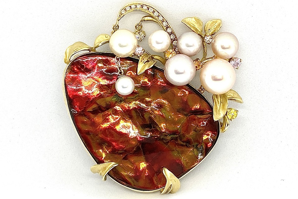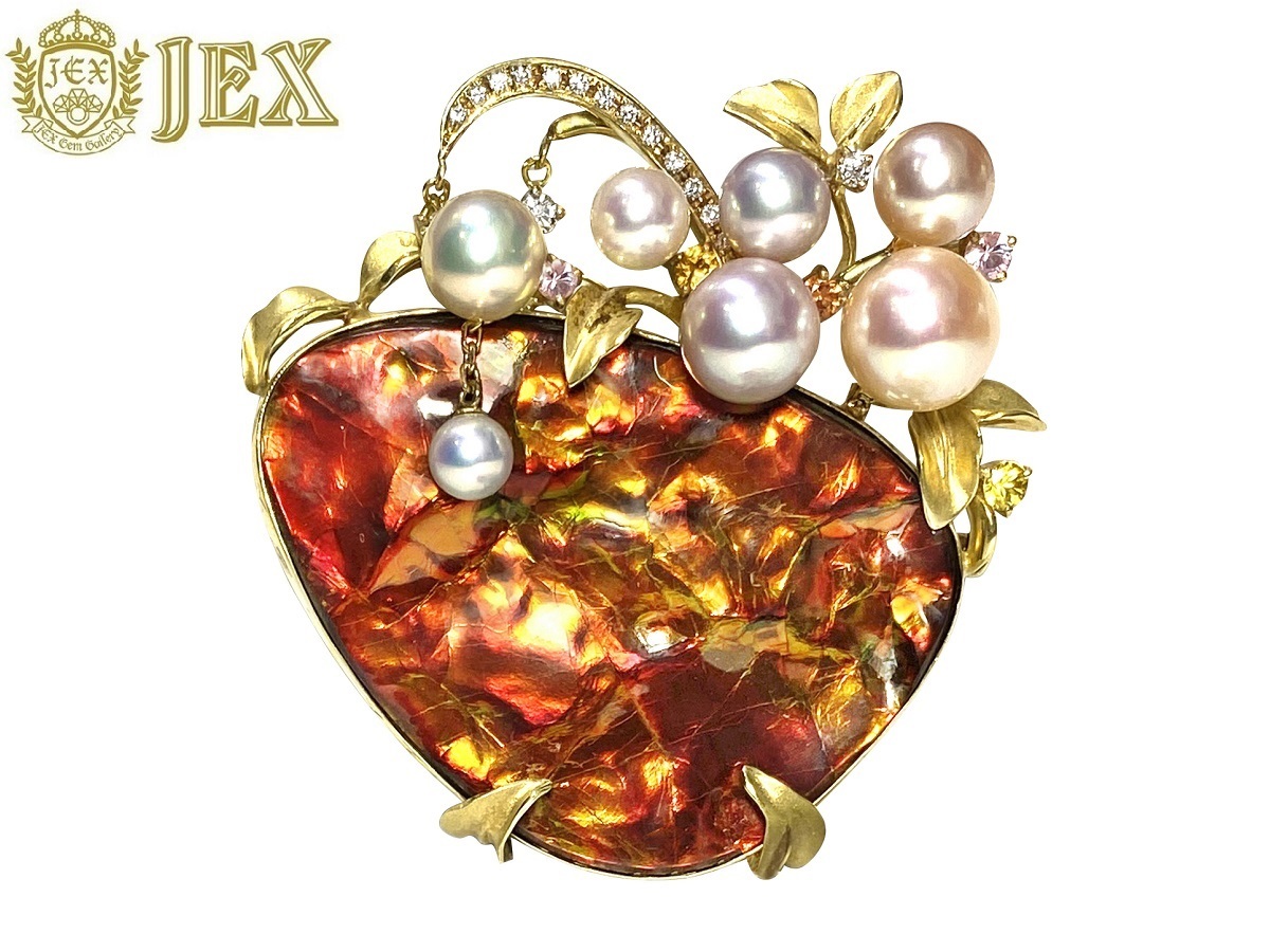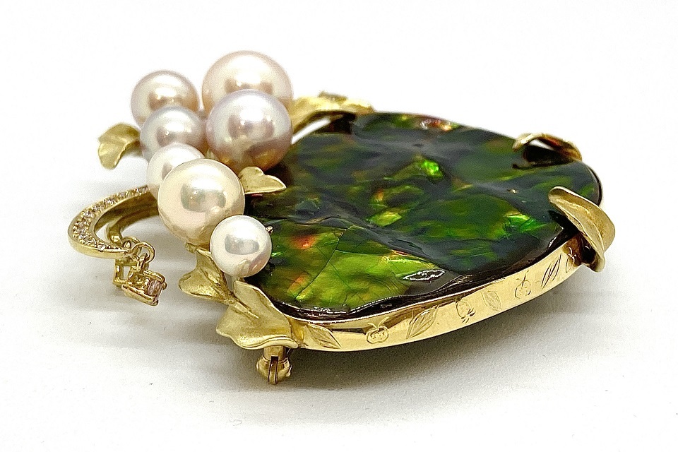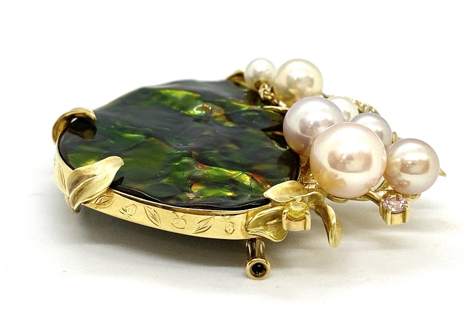 品名 | 【Ammolite】★新品★ K18アンモライト 淡水パール サファイヤ ダイヤモンドブローチ |