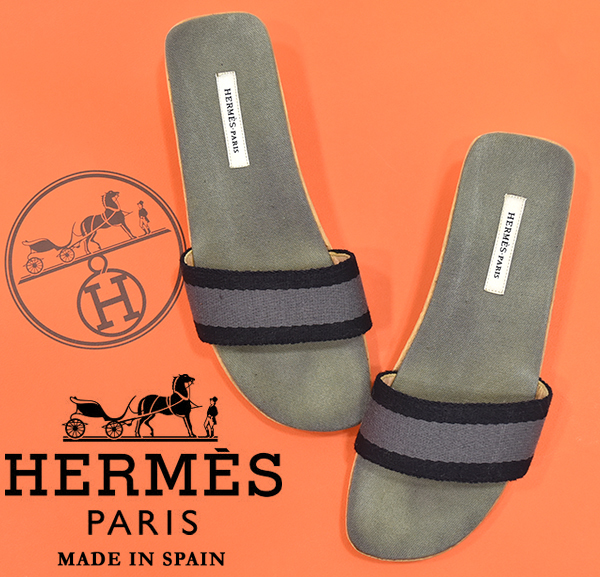 ◆スペイン製 マルジェラ期 エルメス【HERMES】エールライン フールトゥ 木製ソール サンダル 22.5cm相当◆