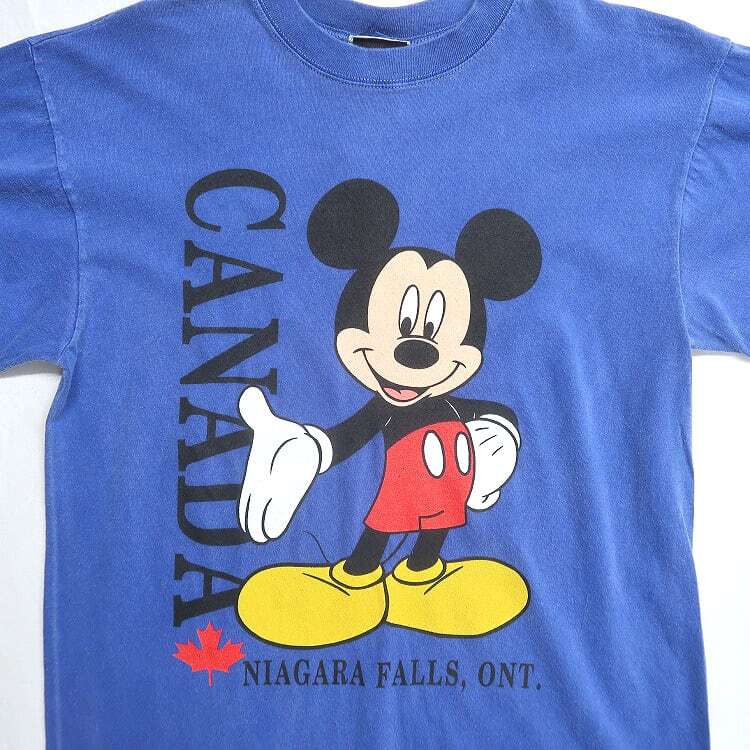 古着 90年代 Disney ディズニー ミッキー プリントTシャツ ブルー 表記:M gd402460n w40501