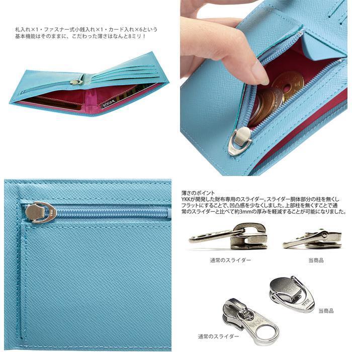 | 商品説明 | 日本製の二つ折り牛革財布です。 札入れ×1・ファスナー式小銭入れ×1・カード入れ×6という基本機能はそのままに、こだわった薄さはなんと8ミリ! 全面に牛革を使用し、高級感のある型押しを施したこだわりの逸品です。 |