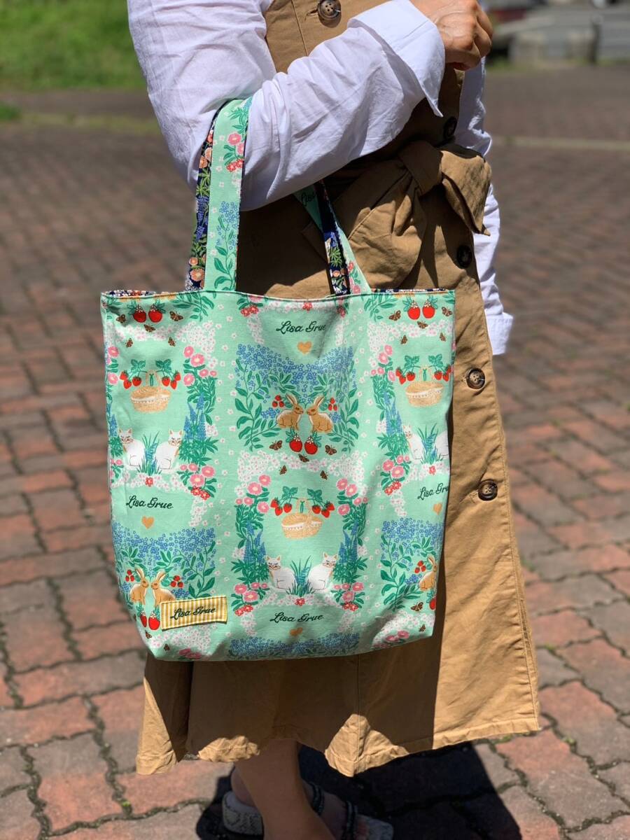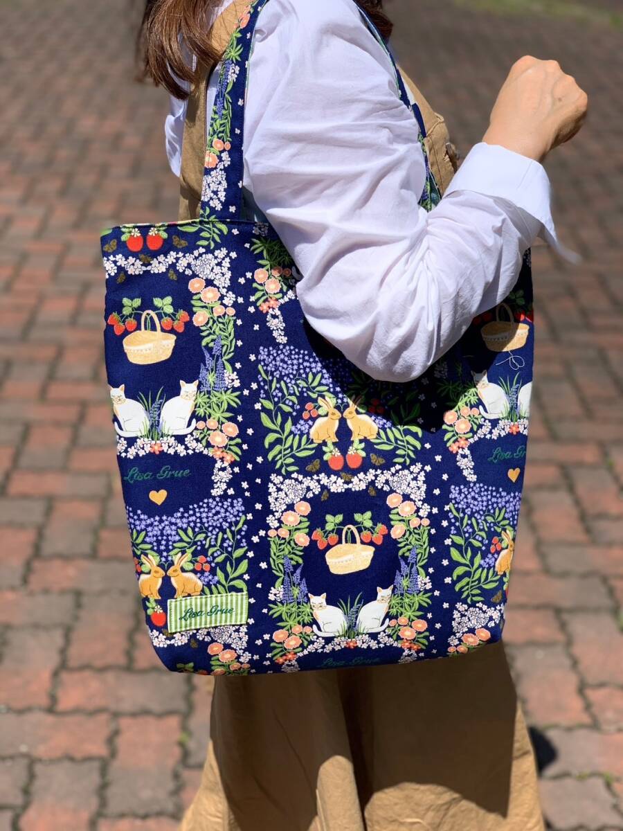 SD-03 ハンドメイド♪ 手提げ リバーシブル トートバッグ うさぎ 猫 ねこ 北欧風 素敵 北欧調 かわいい バッグ カントリー リサグルー 綿