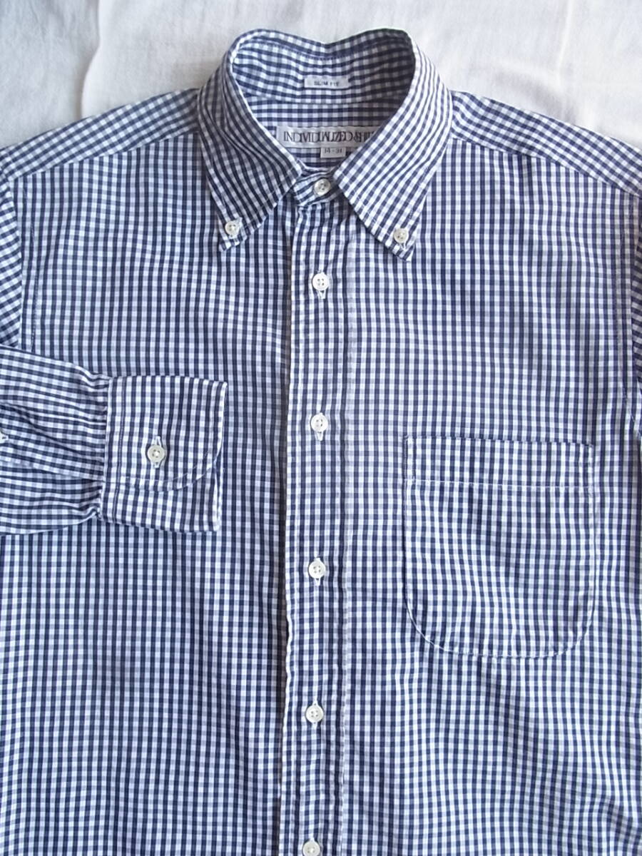 インディビジュアライズドシャツのギンガムチェック柄のボタンダウンシャツになります。USEDで着用感は御座いますが、特に目立ったダメージ等は御座いません。