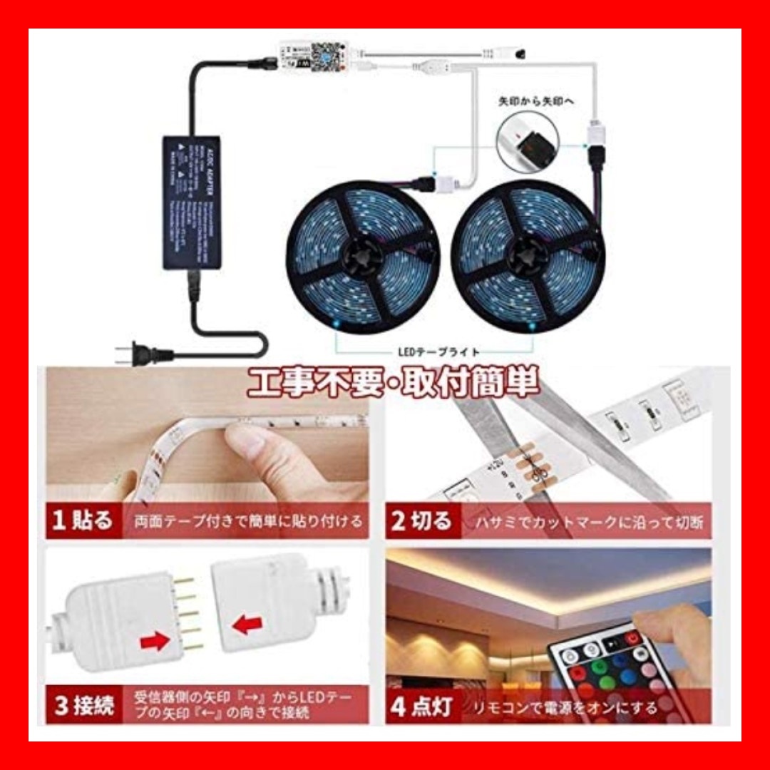 アプリ操作可能!LEDテープライト 音に反応  リモコン付き 5m×2
