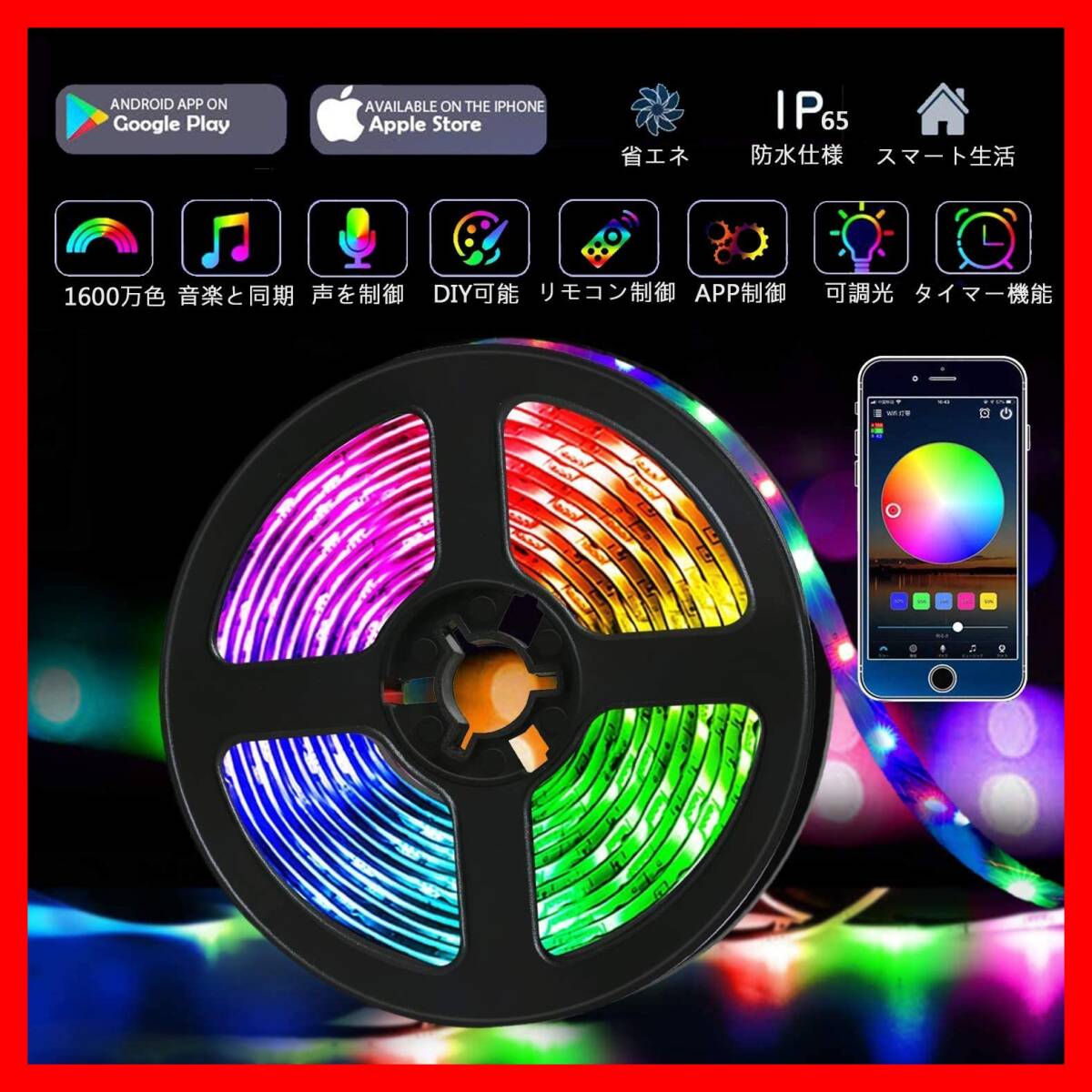 商品名:スマホ操作、音楽に反応、LEDテープライト