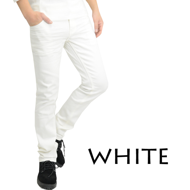 メンズデニム ストレッチデニム 髭加工ジーンズ 33243 スキニーパンツ スリムパンツ 新品ホワイト L