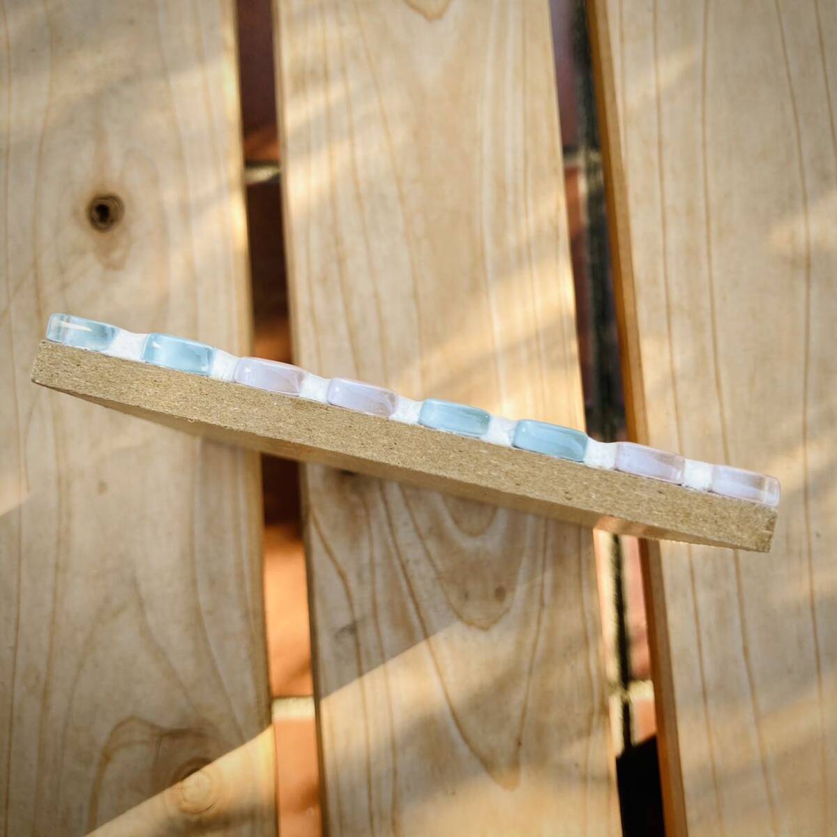 ハンドメイドのガラスタイルコースターです。(底の部分は木材です)