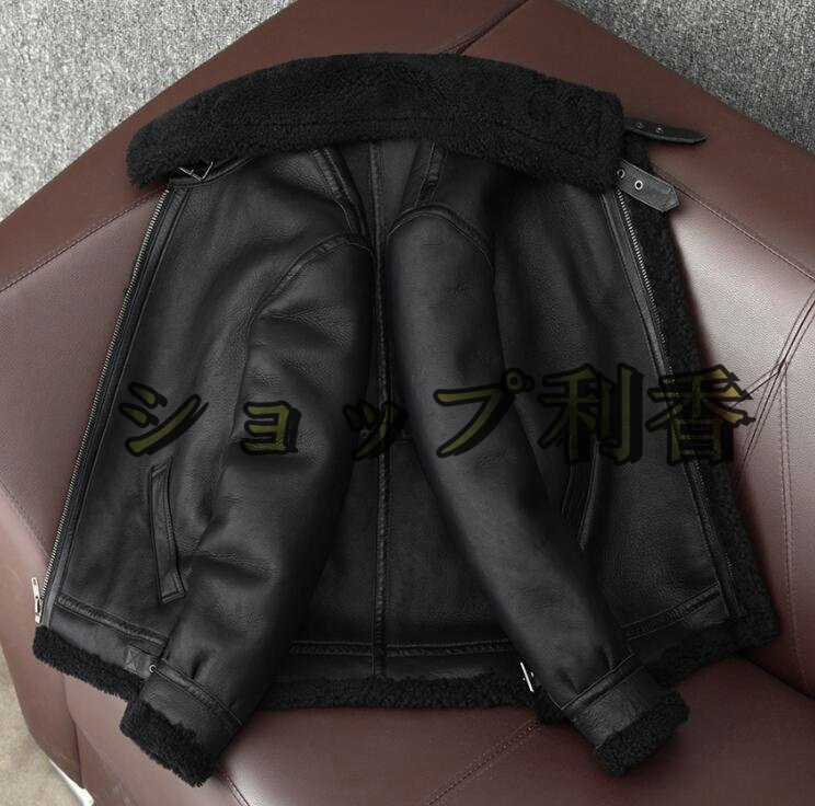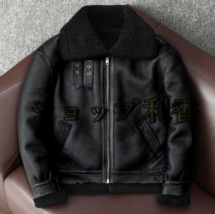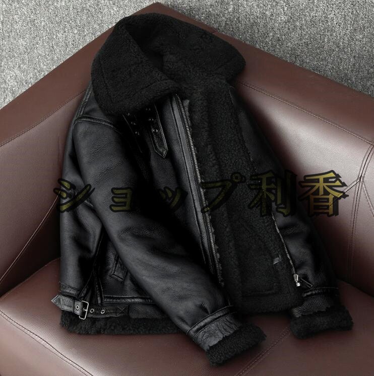 秋冬新品 暖かい 本革ジャケットB3フライトジャケット  メンズ ムートン ウール 革ジャン 本革コート 黒