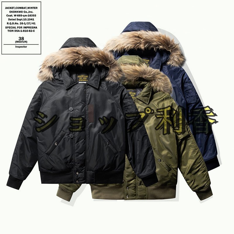 ビンテージ N-2B フライトジャケット ミリタリー  フード付き取り外し可 防寒 防水 メンズコートジャケット S~XXL ミリタリー