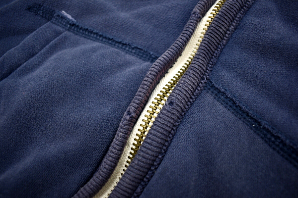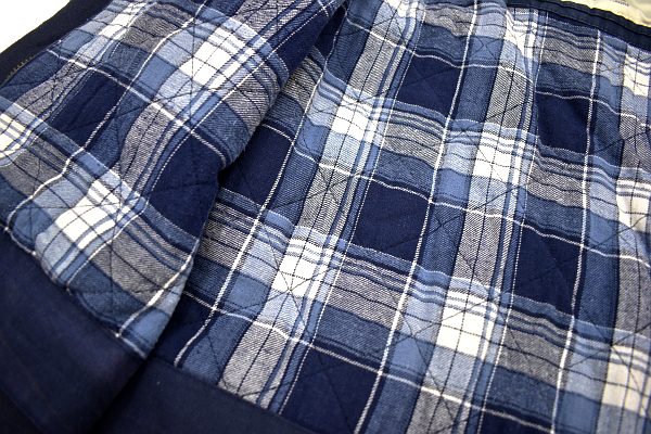 ネイビーカラー クラッシュ加工 裏地チェック 中綿キルティング 外ポケット2個 ヘビーウェイト フルジップアップ パーカー フーディ