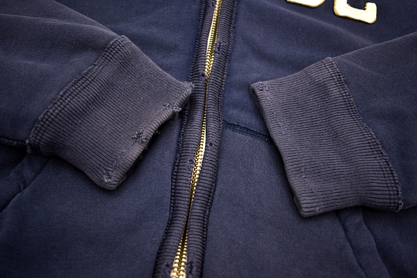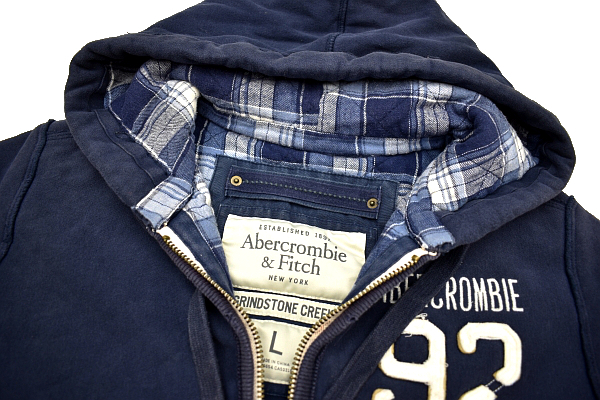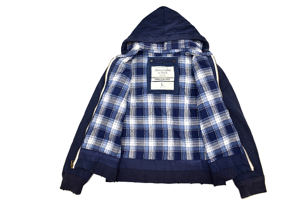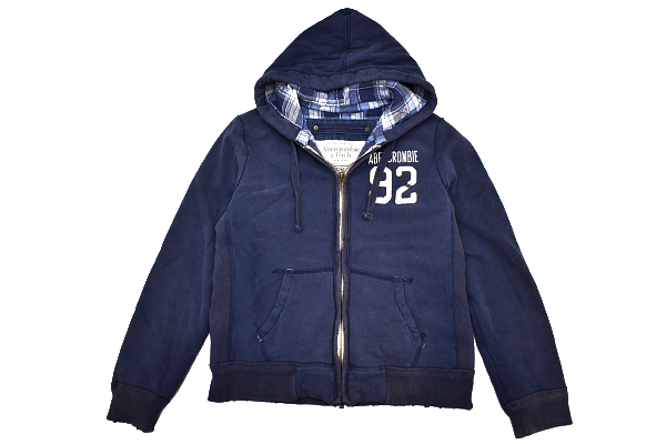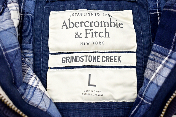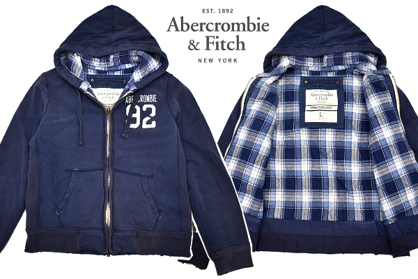 A-4707★ABERCROMBIE & FITCH NEY YORK アバクロ GRINDSTONE CREEK★紺 ヴィンテージ加工 防寒中綿 フルジップ フーディ パーカー L