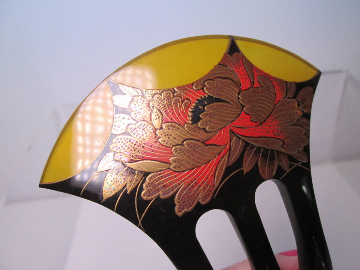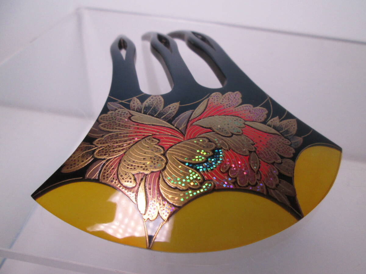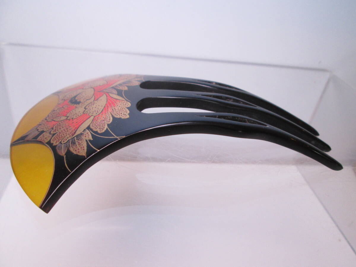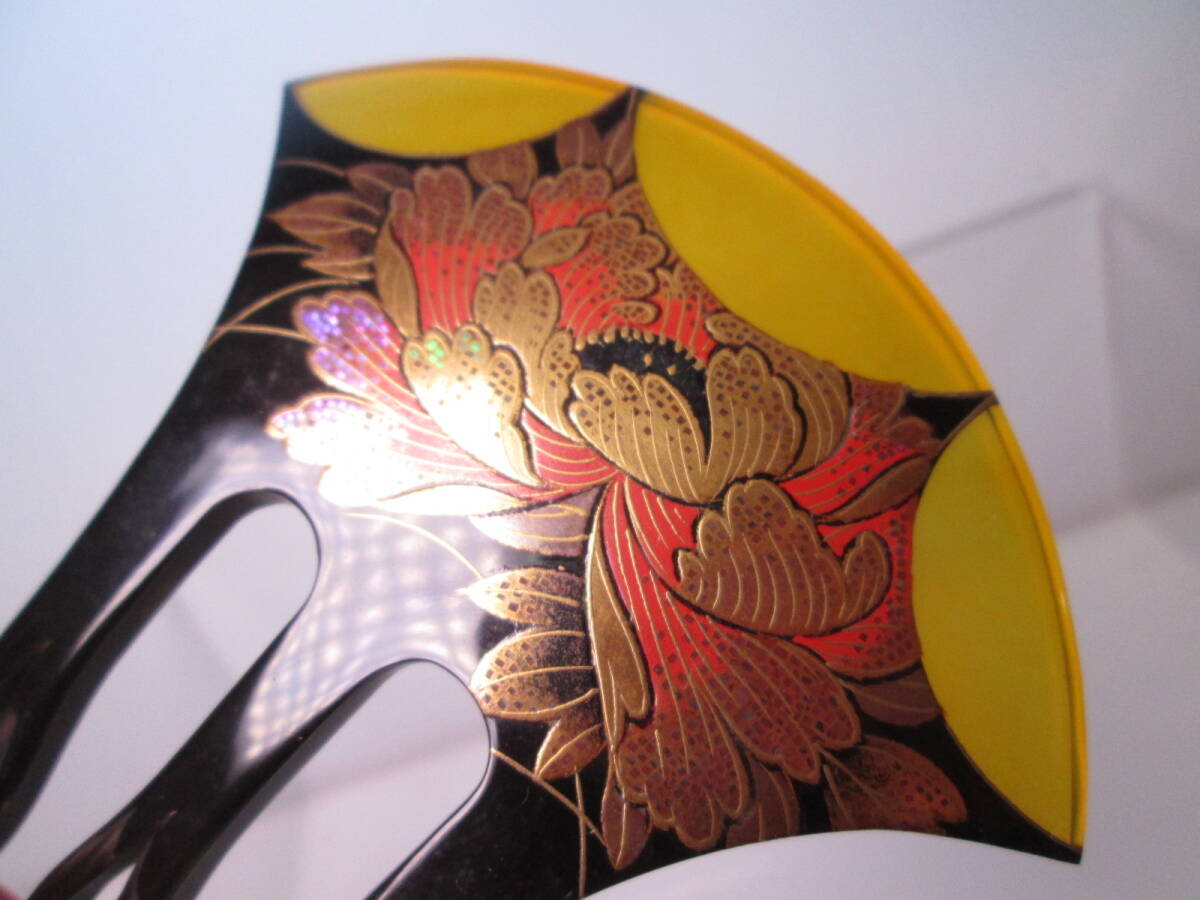 【江月】良生作 本鼈甲 螺鈿細工 金蒔絵 牡丹の花文 大振りなかんざし 木箱付