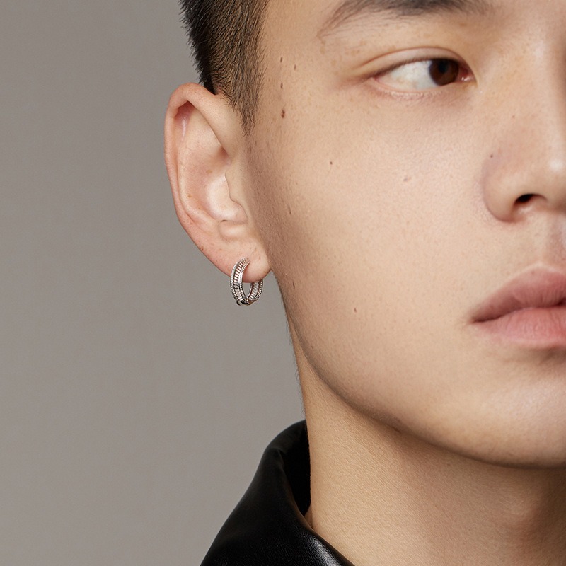 男性だけではなく女性もメンズライクにスタイリッシュな雰囲気で身に着けていただけます。パンクやダメージ感のあるグランジスタイルに相性の良いピアスです。