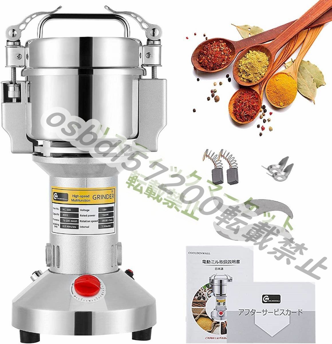 1300wハイパワー、28000r/minの回転数、3枚粉砕羽あり、あっという間粉末が仕上がり、サラサラ感が抜群です。