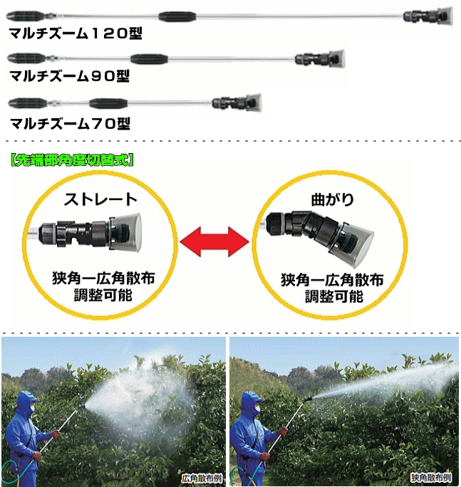 | ※散布幅はノズルからの距離が1mでの数値です。 ※ズーム噴板NN-ZO-20S(高木用),NN-WZV-20S(低木/野菜用)を付属しています。 | |