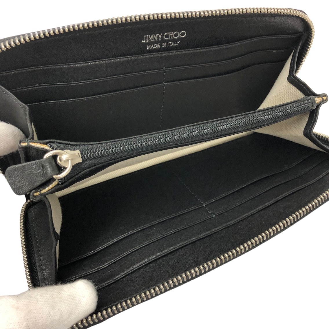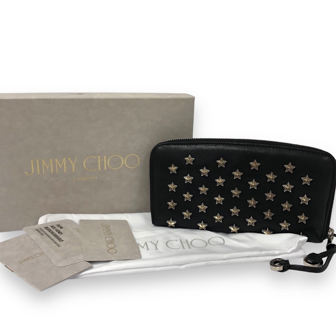 【ITUQTV2ULQZ6】JIMMY CHOO ジミーチュウ 長財布 ラウンドファスナー フィリパ 0C3421 レザー スタッズ ブラック×メタル スタ ー
