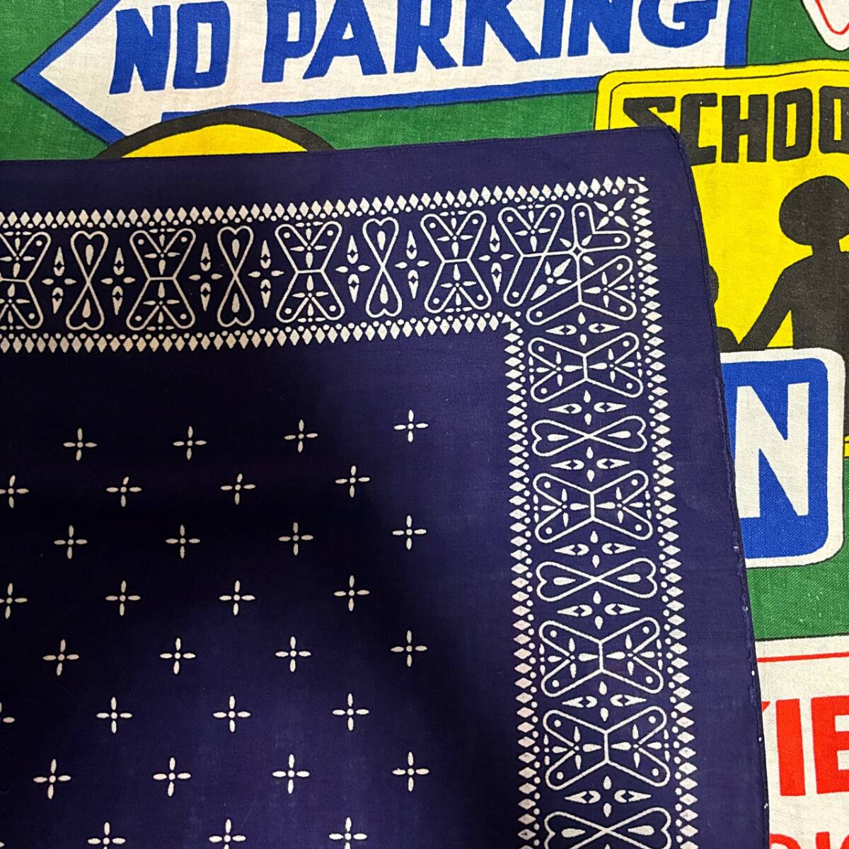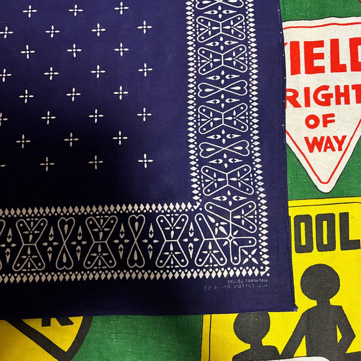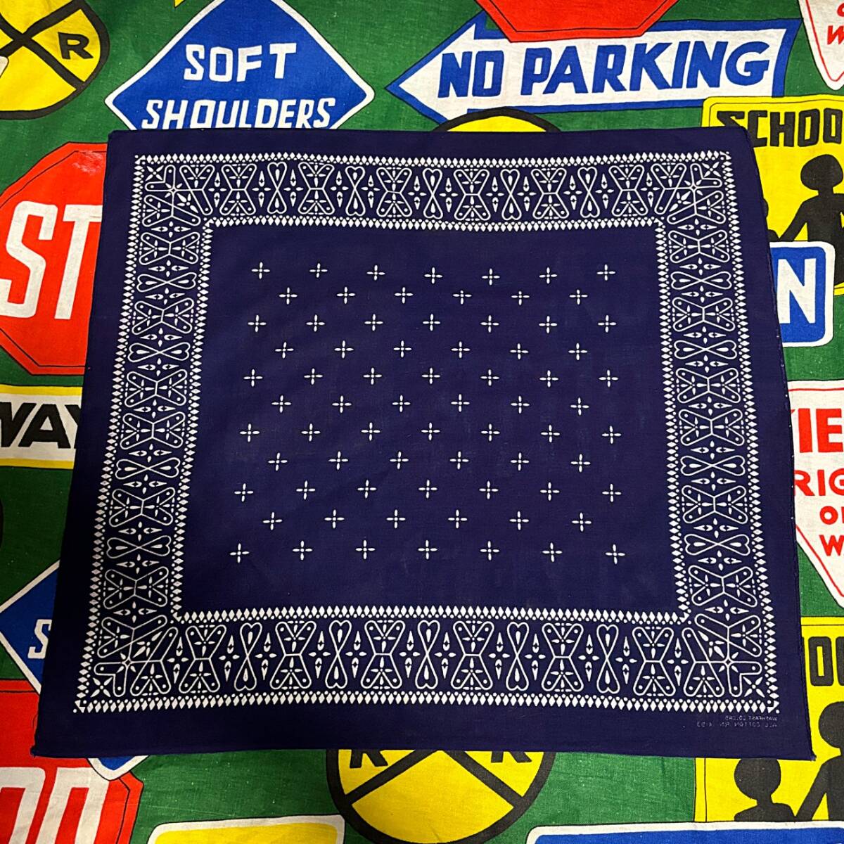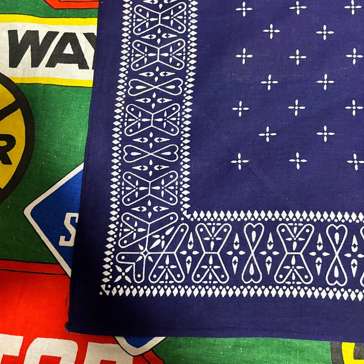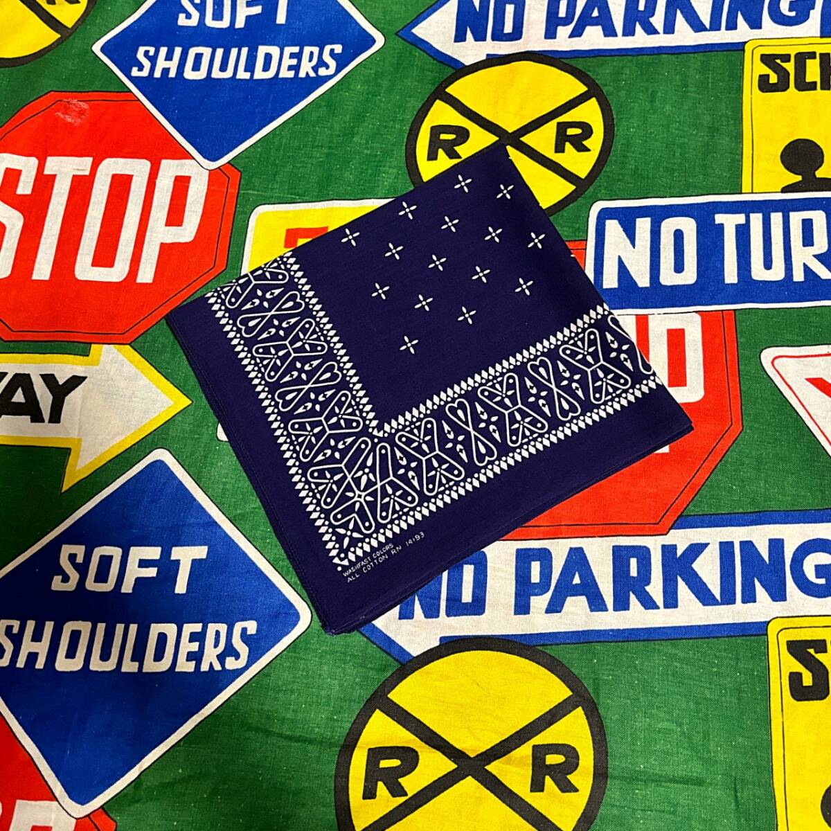 ☆人気の高いクロス柄が◎な1枚☆Made in USA製アメリカ製ファーストカラーWASHFASTCOLORビンテージコットンプリントバンダナ紺色60s60年代