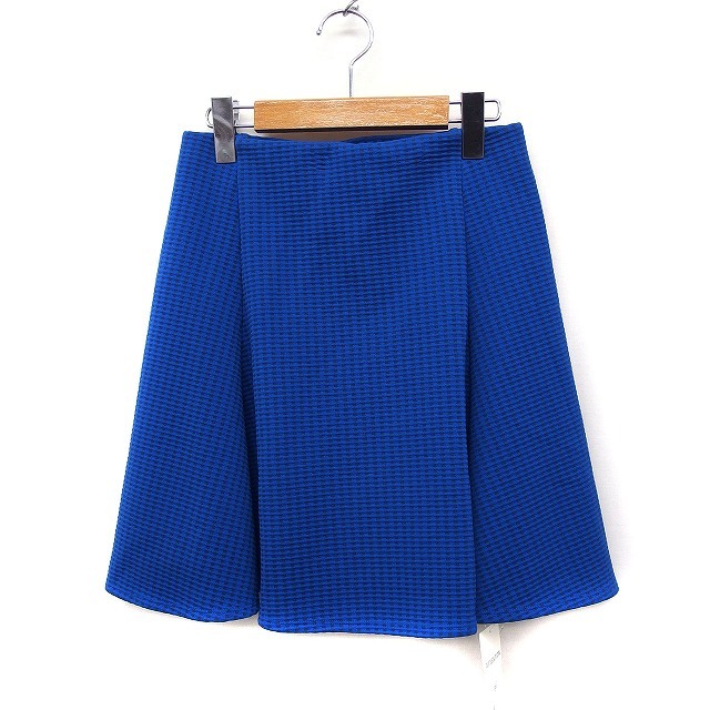 未使用品 レイビームス Ray Beams タグ付き 柄 フレア スカート ミニ イージー 0 ブルー 青 /FT30 レディース