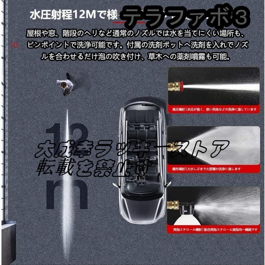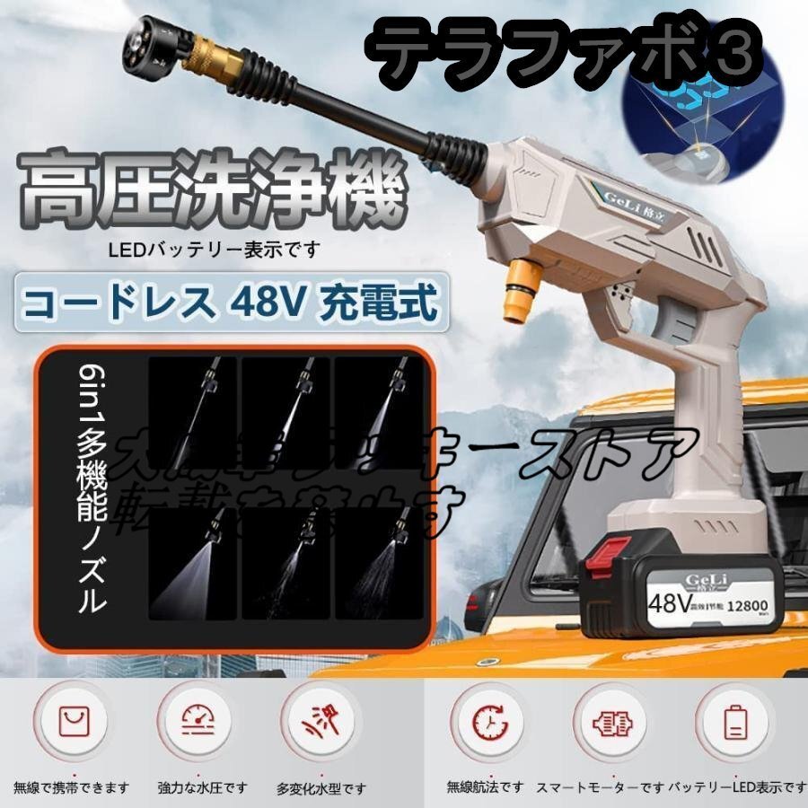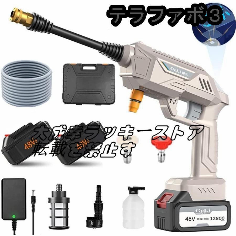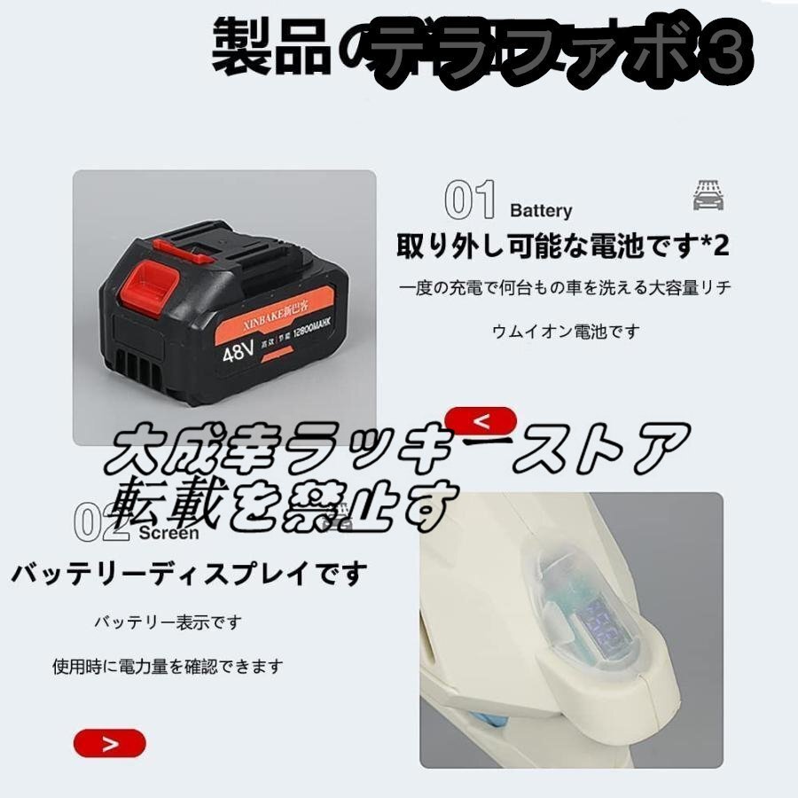 高圧洗浄機 充電式 48V バッテリー付き*2 コードレス 5MPa最大吐出圧力 水噴射量5.2L/min 6種類噴射モード ノズル洗車 強力噴射 大容量