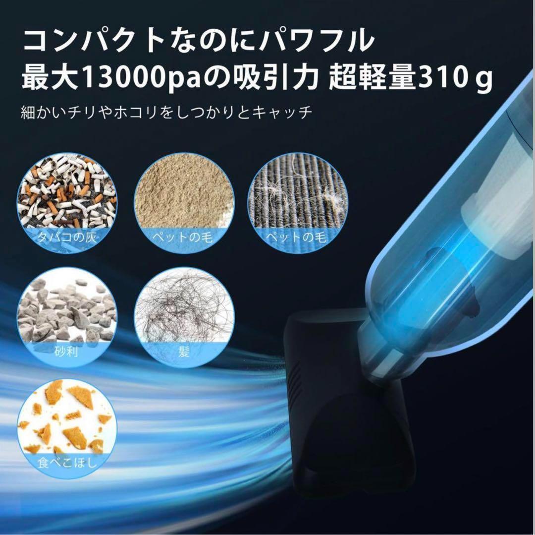 コードレス 13000PA カークリーナー USB充電式 電動ハンディ掃除機