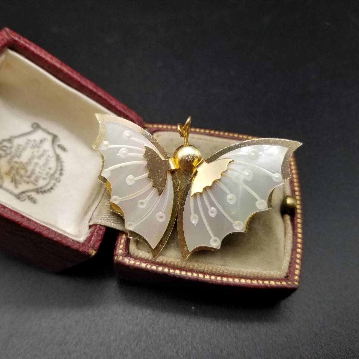 白い羽根の蝶 ヴィンテージ ブローチ ホワイト 昆虫モチーフ レトロ コスチュームジュエリー エレガント シェル 貝調 YDB12