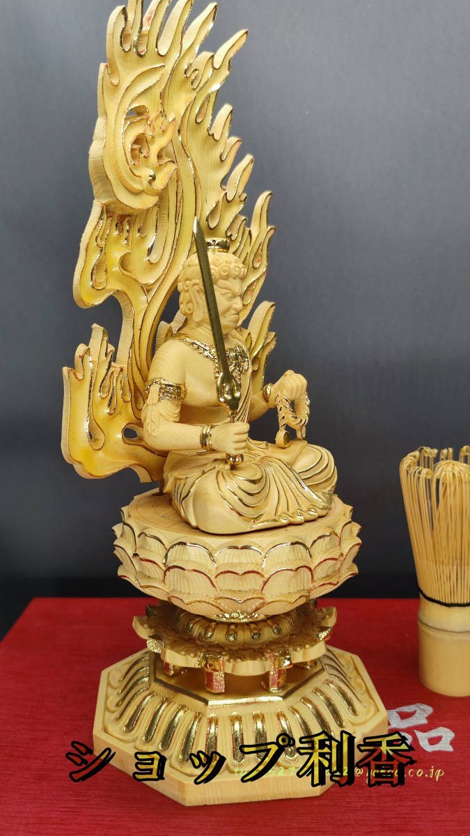 不動明王 仏教工芸品 総檜材 極上彫 木彫仏像 不動明王像 座像 仏教美術 置物 木彫 仏像