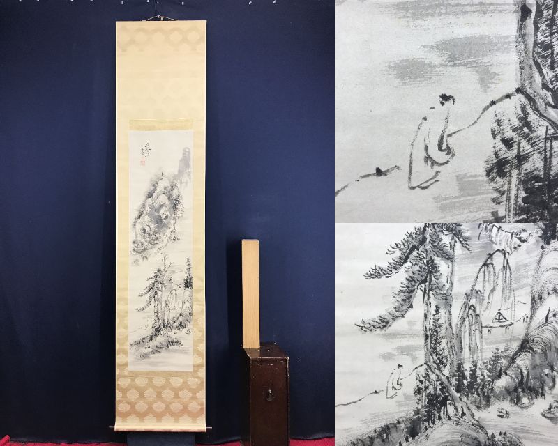 真作/浦上玉堂/幽林夕陽/山水人物図/山水図/掛軸☆宝船☆AF-333