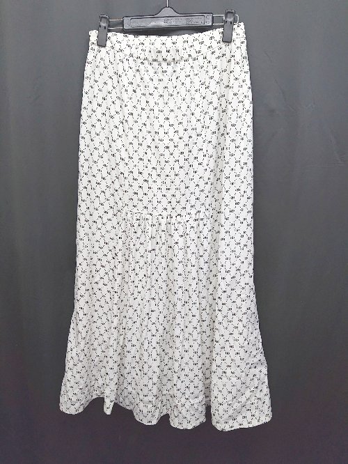 ◇ ROPE' ロペ 総柄 サイドジップ 裏地付き 大人女子 ロング丈 台形 スカート サイズ38 ホワイト ブラック レディース P