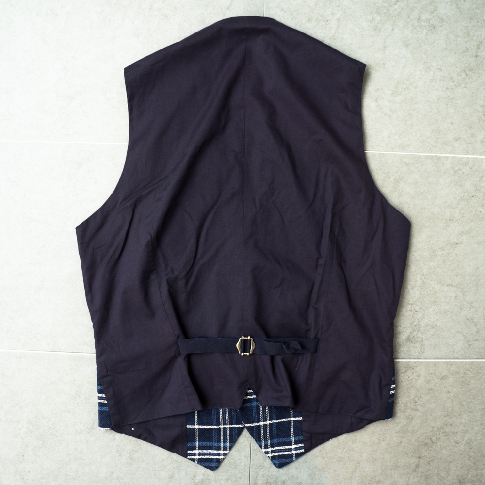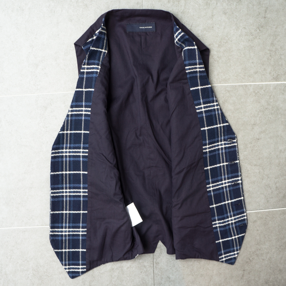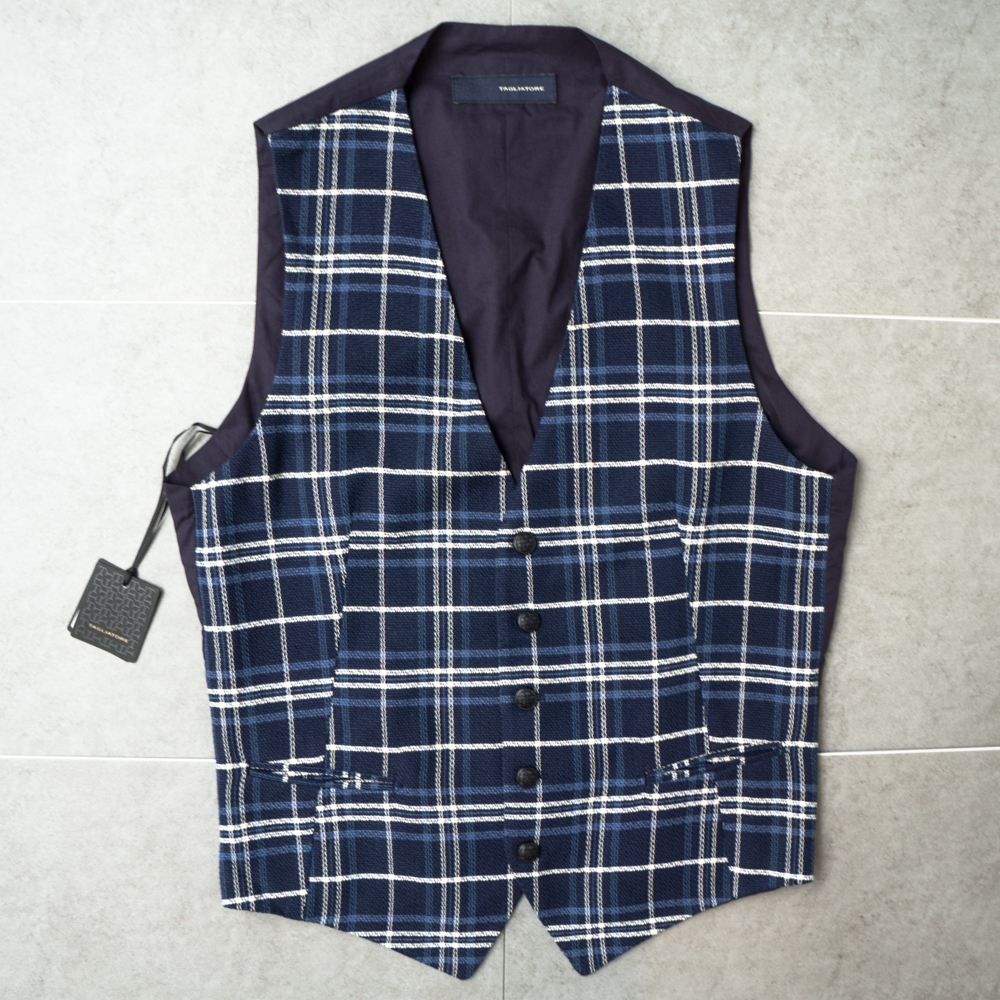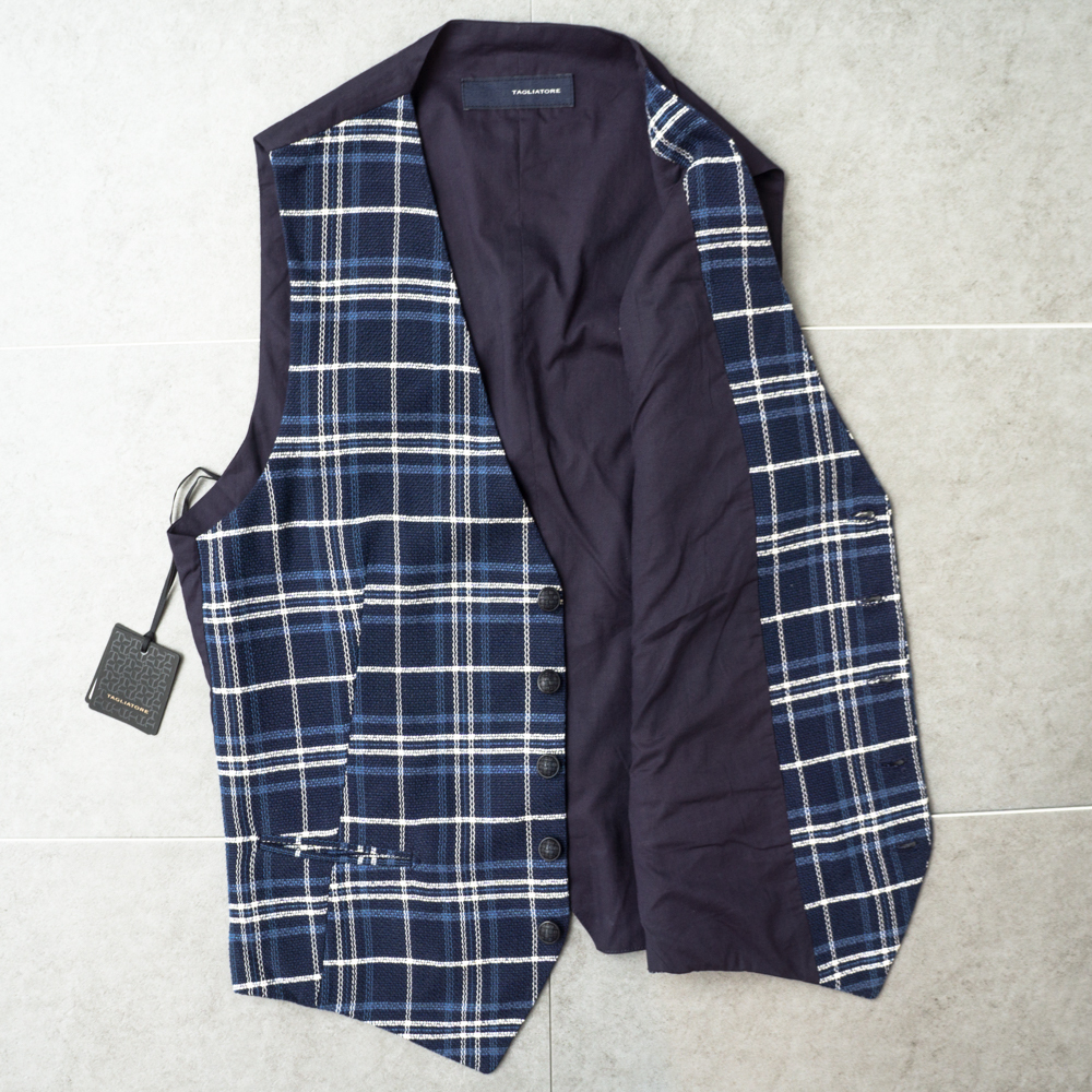 新品★ タリアトーレ コットン リネン ホップサック ジレ 48 チェック 送料込 メンズ ネイビー ベスト ジャケット TAGLIATORE 春夏