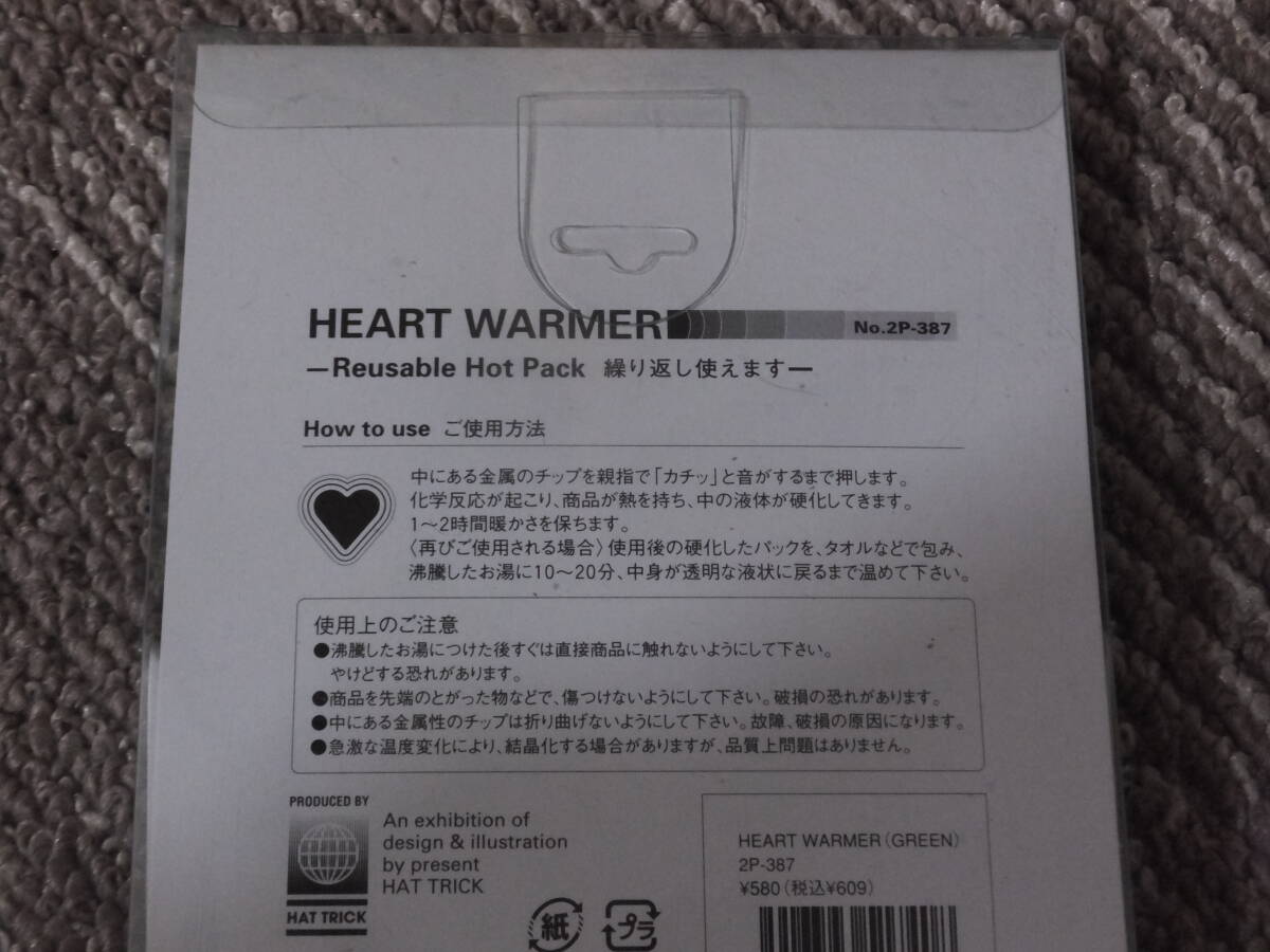 ☆HeartWarmer☆繰り返し使えるカイロ☆グリーン☆未開封未使用☆