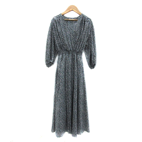 ナイスクラップ NICE CLAUP natural couture ナチュラルクチュール ワンピース ロング丈 長袖 Vネック 花柄 F マルチカラー 緑 レディース