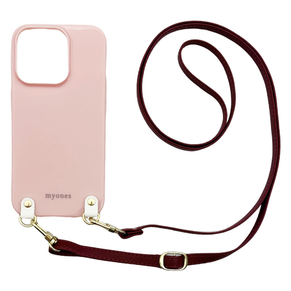 iPhone13 Mini アイフォン13ミニ スマホケース(くすみピンク/ボルドー)ソフトケース ストラップ 肩掛け 首かけ